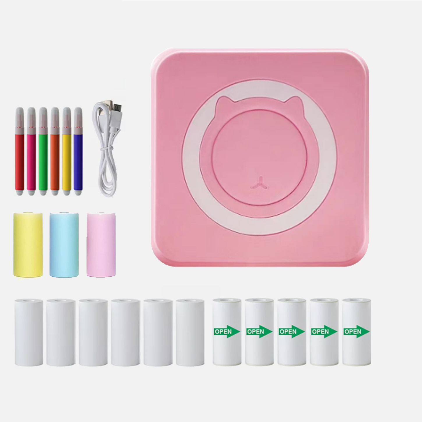 • 재고 있음: C15 대외 무역 버전 화이트 핑크 + 인쇄 용지 5롤 + 수채화 펜 + 임의 스티커