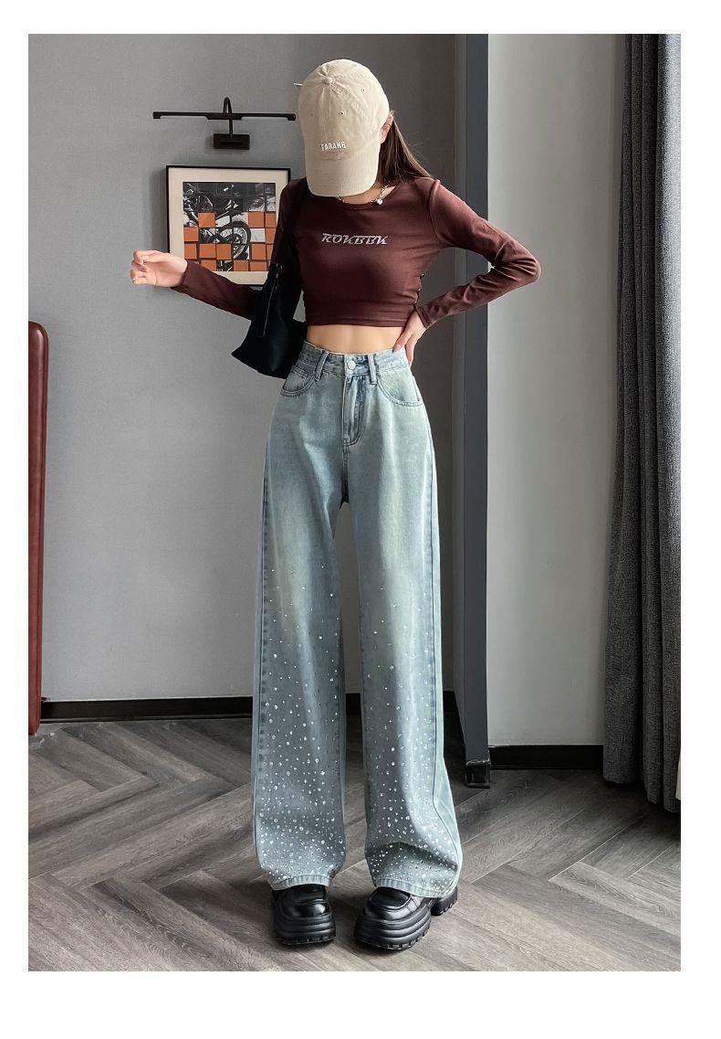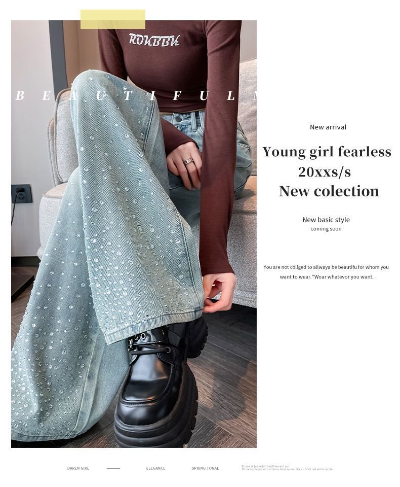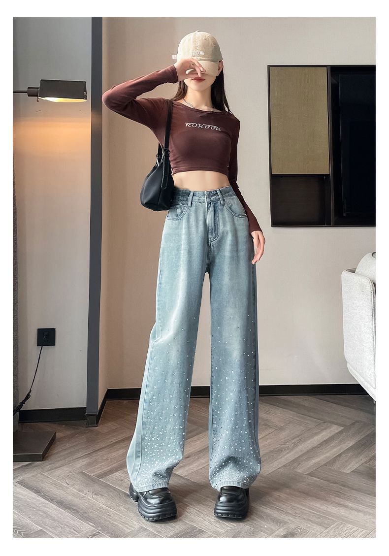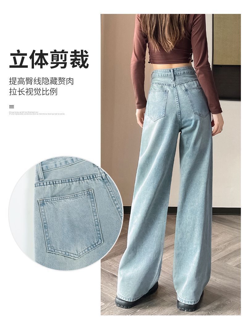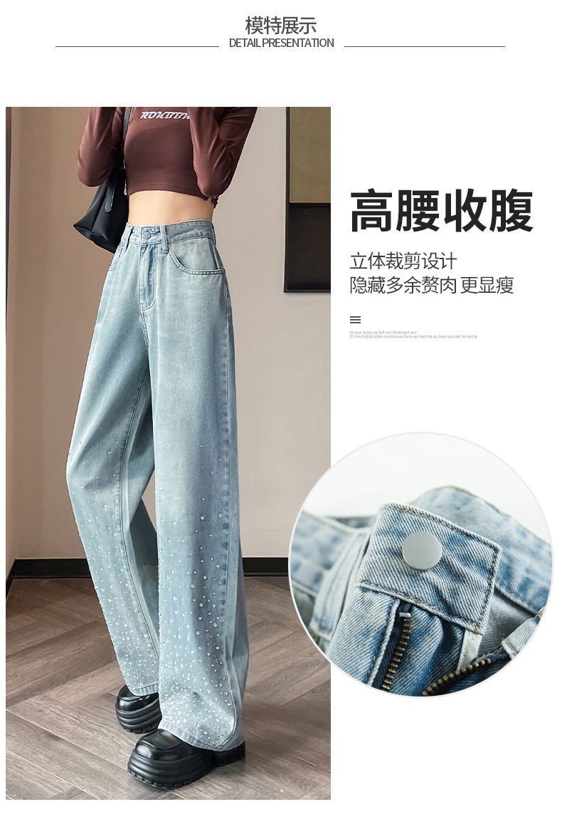 튼튼한 핫 드릴링 청바지 여성용 뉴 플러스 사이즈 여성용 통통녀 밝은 색상의 하이 웨이스트 배 모양의 스트레이트 레그 와이드 레그 팬츠스토어 가기