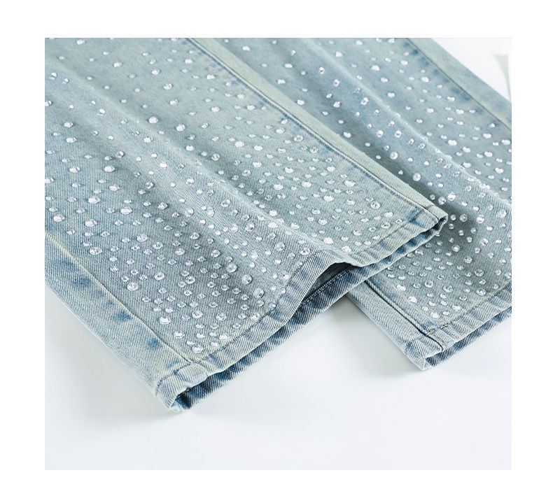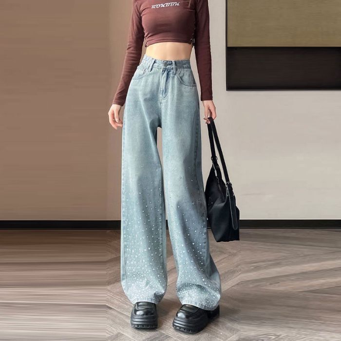 튼튼한 핫 드릴링 청바지 여성용 뉴 플러스 사이즈 여성용 통통녀 밝은 색상의 하이 웨이스트 배 모양의 스트레이트 레그 와이드 레그 팬츠