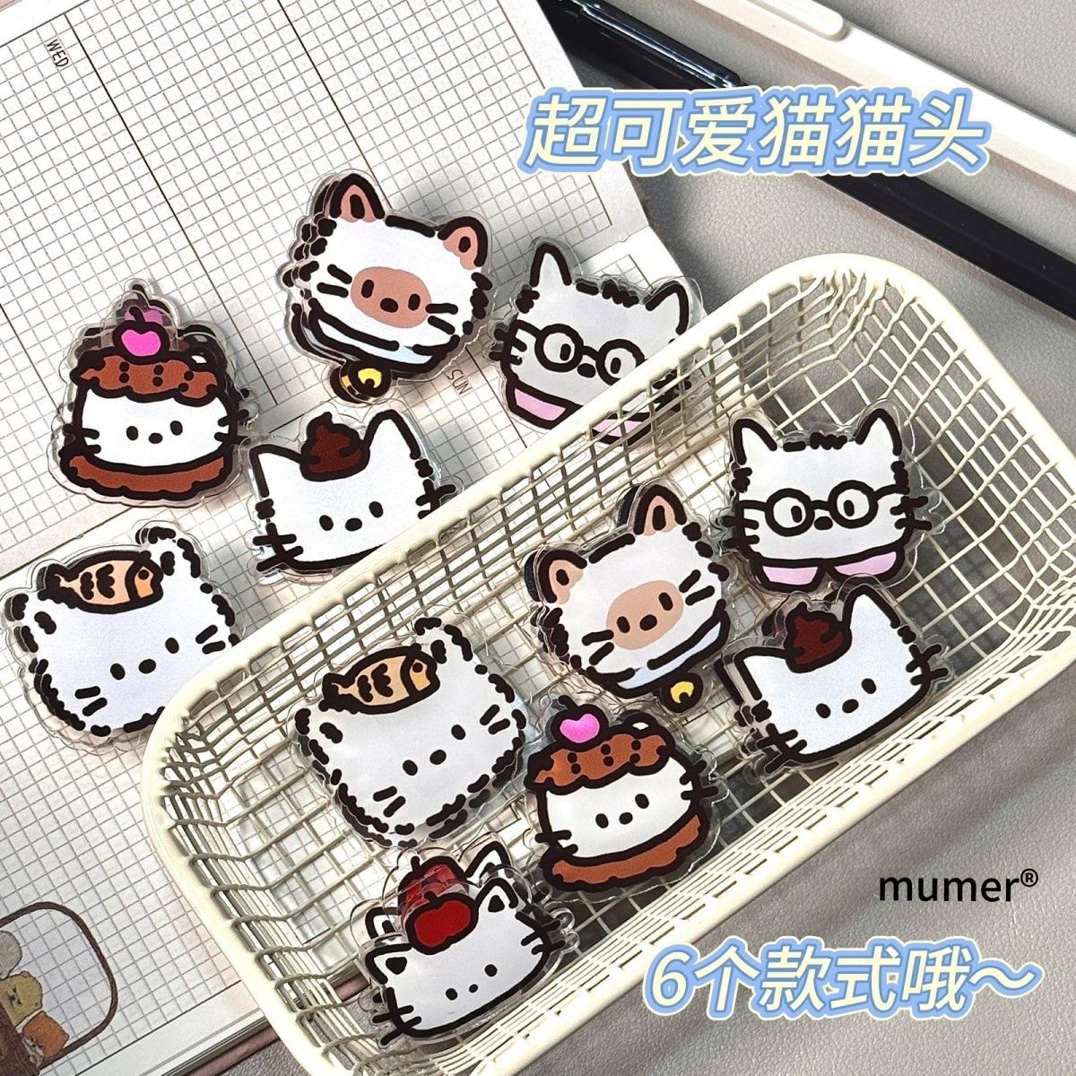 귀여운 고양이 머리 모양 메모 홀더 만화풍 양면 아크릴 PP 클립 수납 클립 시험지 클립스토어 가기
