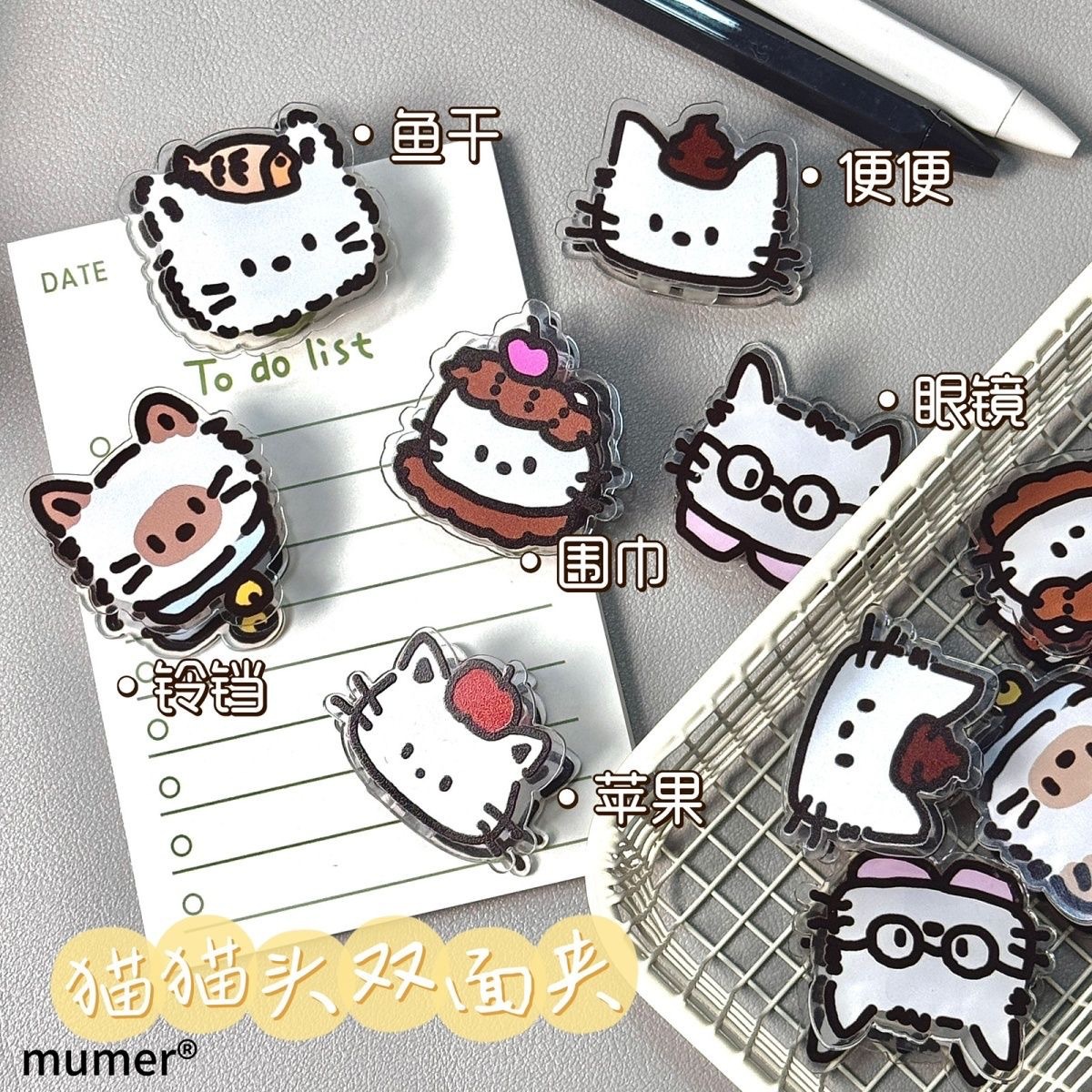귀여운 고양이 머리 모양 메모 홀더 만화풍 양면 아크릴 PP 클립 수납 클립 시험지 클립