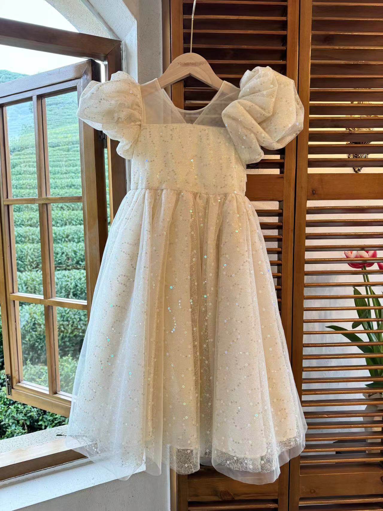 여자 여름 원피스 2024 새로운 어린이 푹신한 원사 공주 원피스 세련된 어린 소녀 여름 스커트 여름스토어 가기