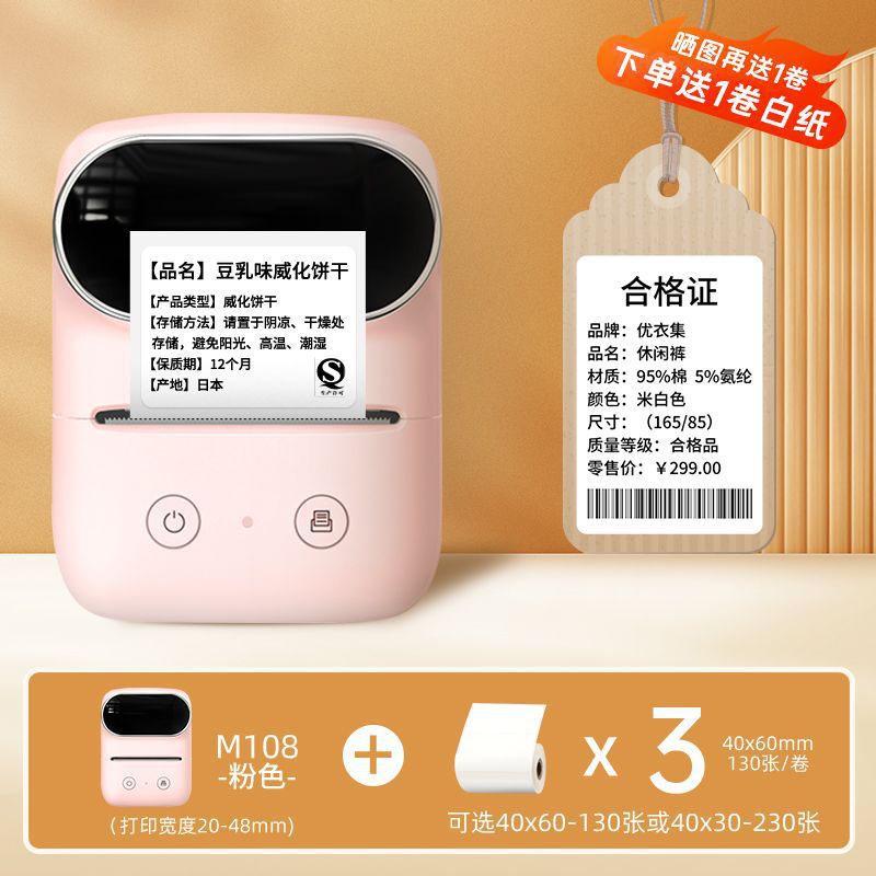 • M108 핑크 [플래그십 베스트셀러 모델] Shunfeng 무료 배송 - 화이트 라벨 용지 3롤 [방금]