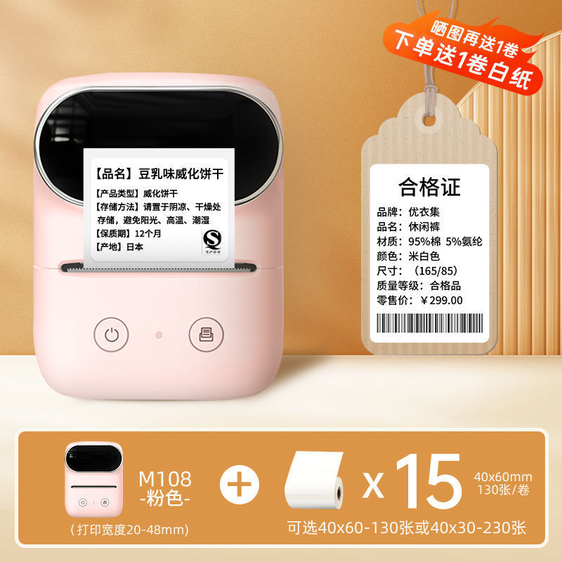 • M108 핑크 [플래그십 베스트셀러 모델] Shunfeng 무료 배송 - 화이트 라벨 용지 1롤 [체험