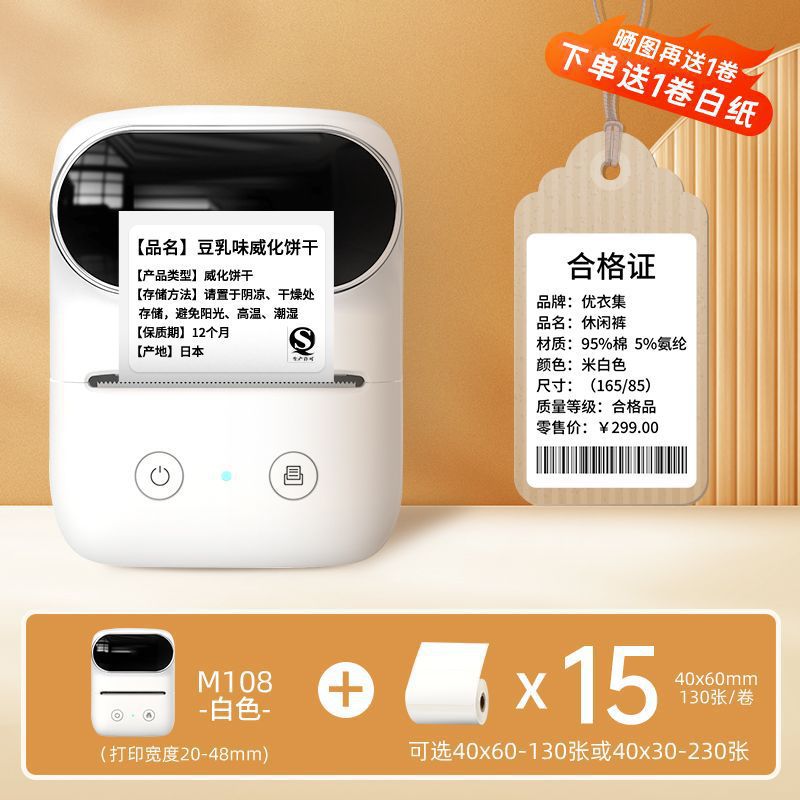 • M108 화이트 [플래그십 베스트셀러 모델] Shunfeng 무료 배송 - 화이트 라벨 용지 1롤 [체험