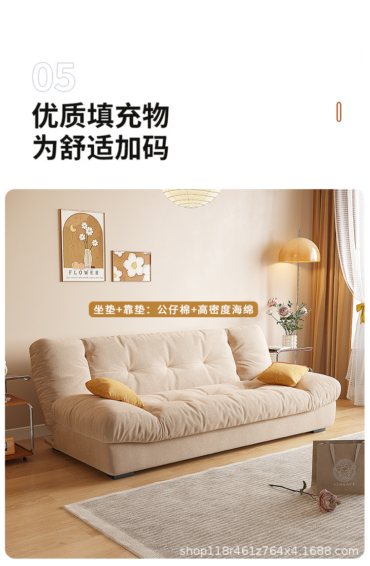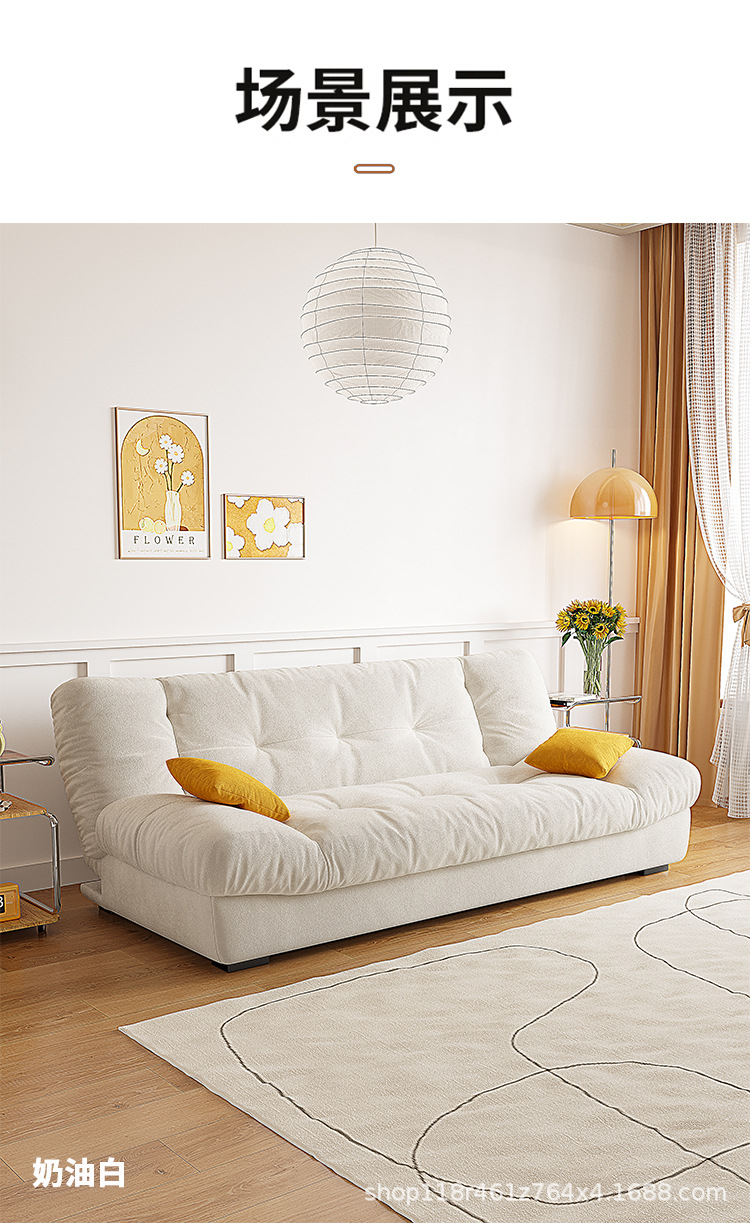클라우드 패브릭 소파 베드 접이식 이중 목적 거실 작은 아파트 2025 새로운 프랑스 스타일 3 인승 스트레이트 크림 스타일스토어 가기