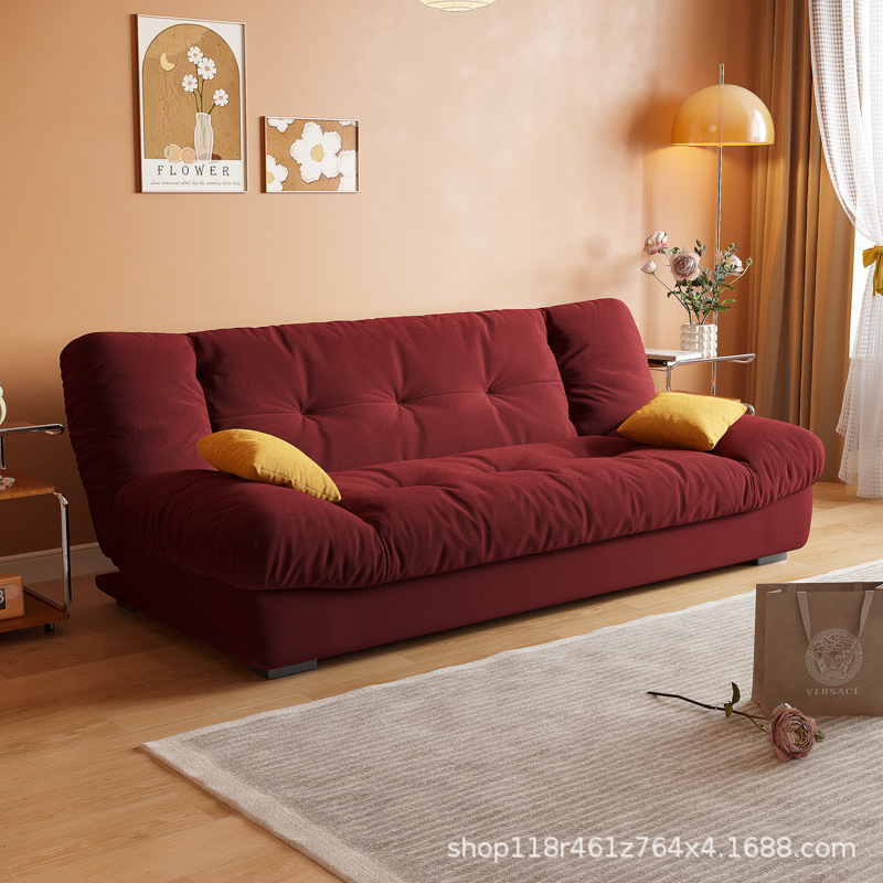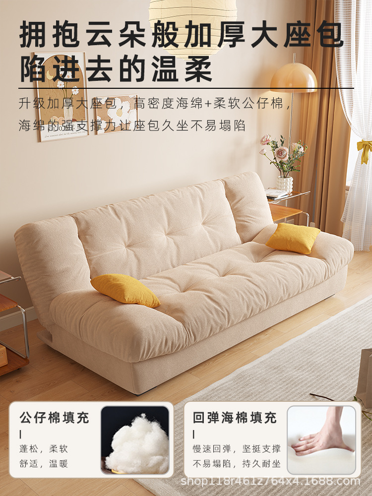 클라우드 패브릭 소파 베드 접이식 이중 목적 거실 작은 아파트 2025 새로운 프랑스 스타일 3 인승 스트레이트 크림 스타일