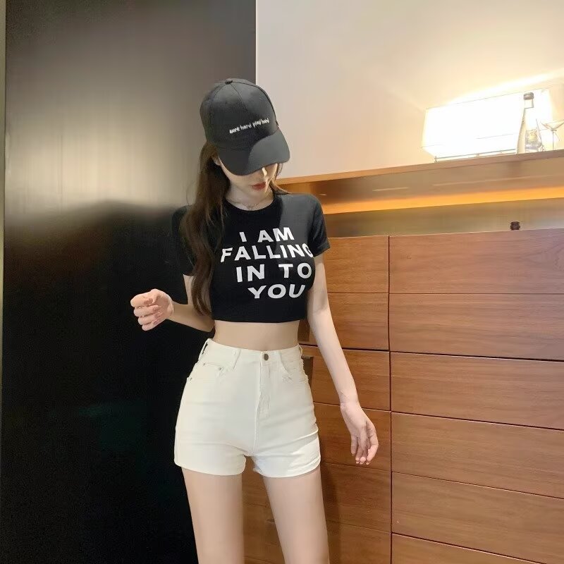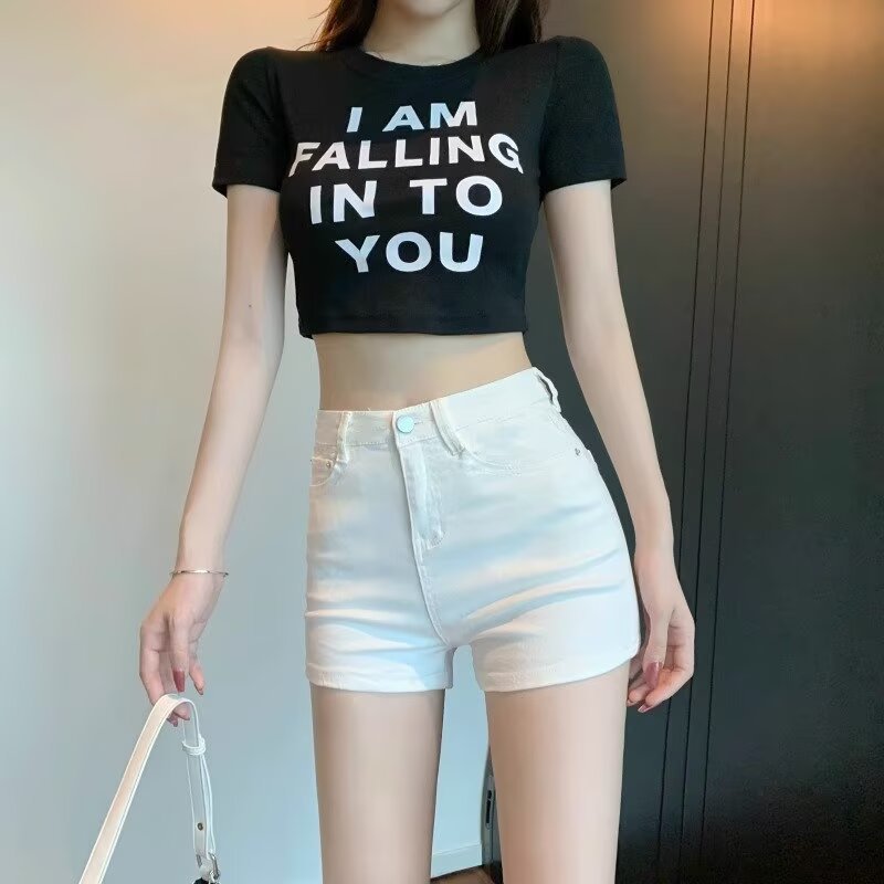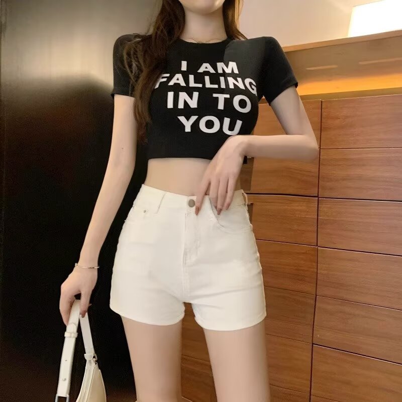 플러스 사이즈 높은 허리 슬림 룩 데님 반바지 여성 2025 여름 새로운 우아한 우아한 슬림-적합 핫 소녀 유행 바지스토어 가기