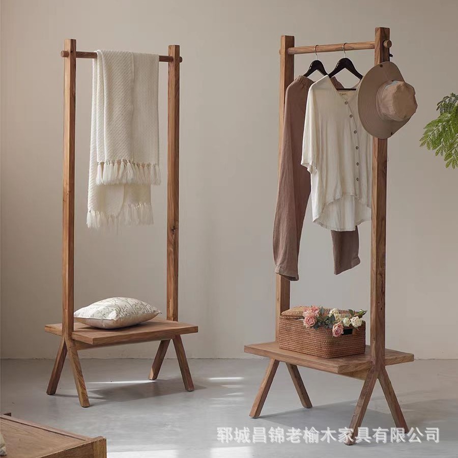 오래된 느릅나무 옷걸이, 원목 옷걸이, 간이봉 옷걸이, 현관문 원목 바닥형 수납 옷걸이