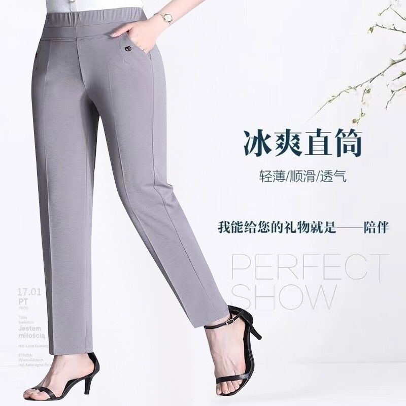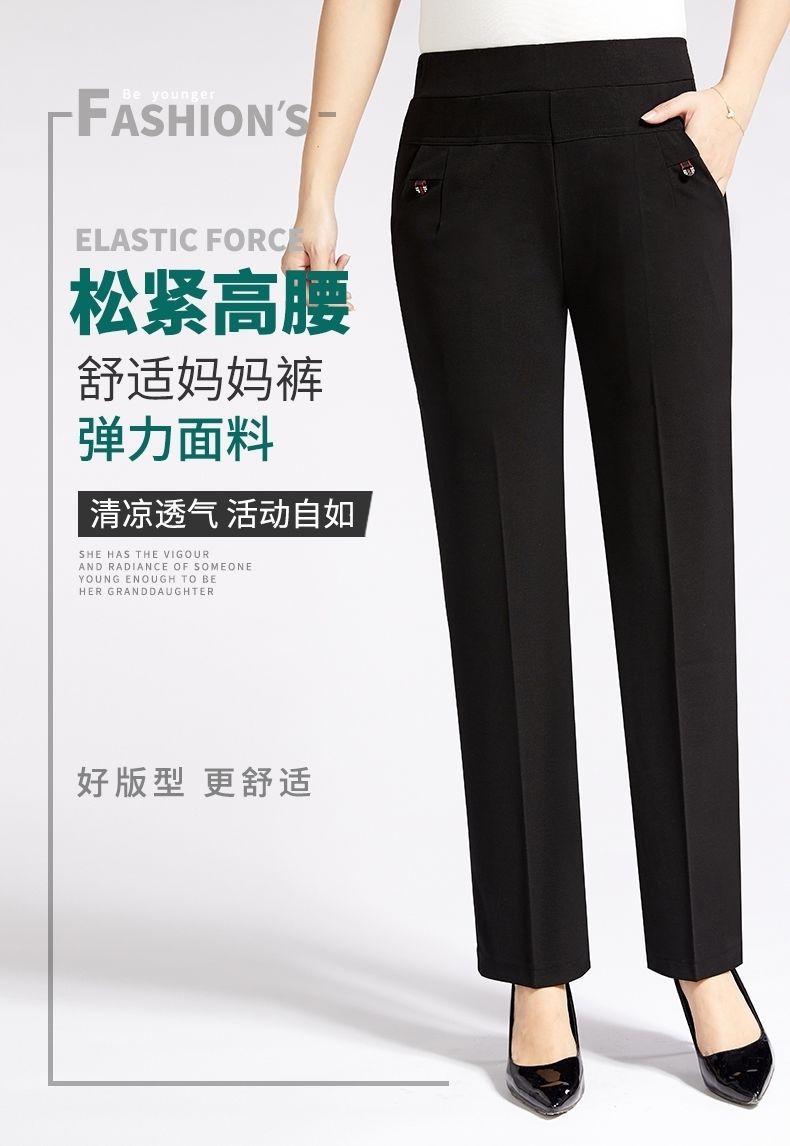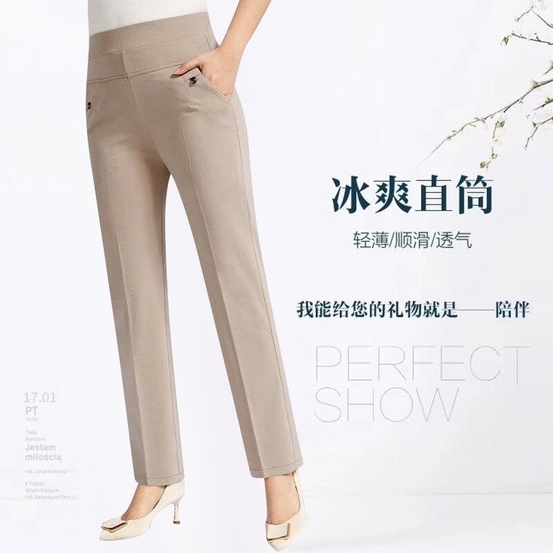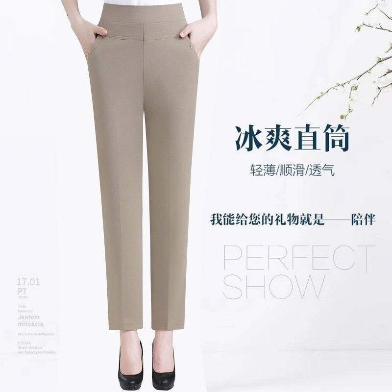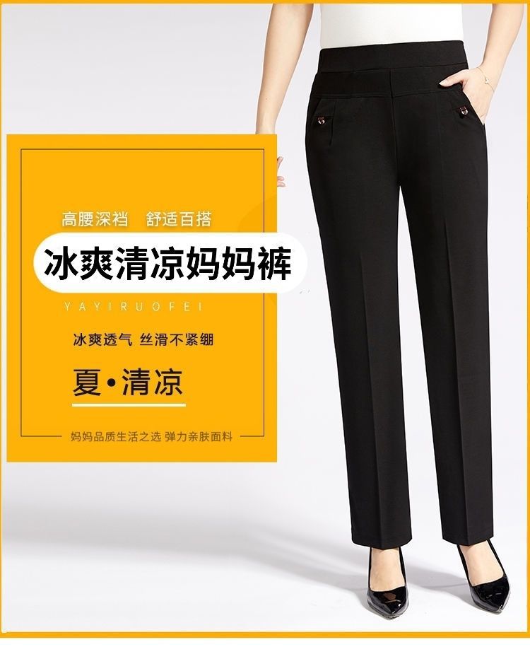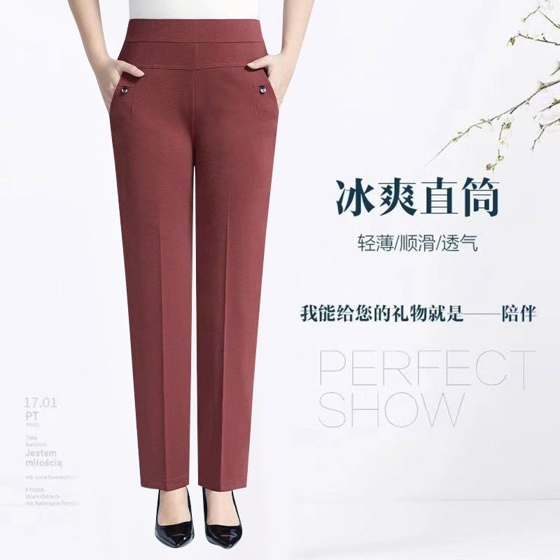 여름 엄마 바지 높은 허리 스트레이트 중년 및 노인 여성 바지 느슨한 플러스 사이즈 스트레치 캐주얼 바지 얇은 외부 착용 바지
