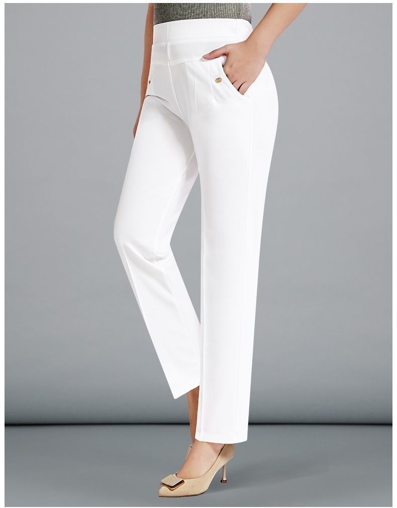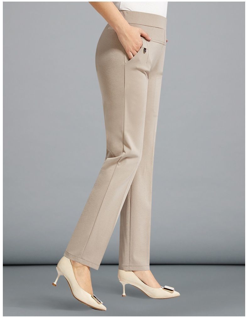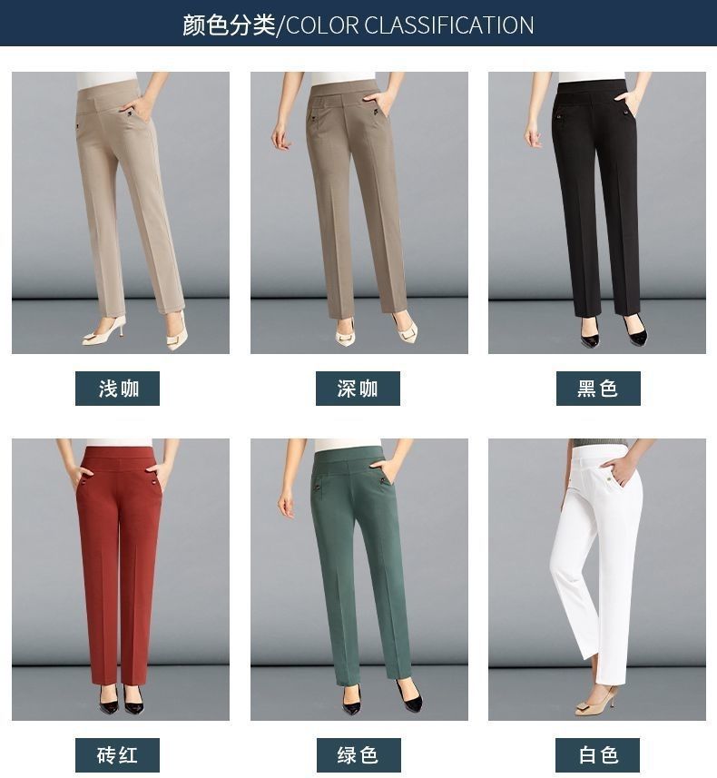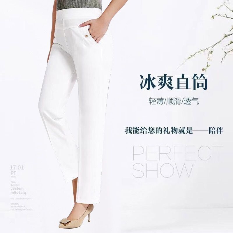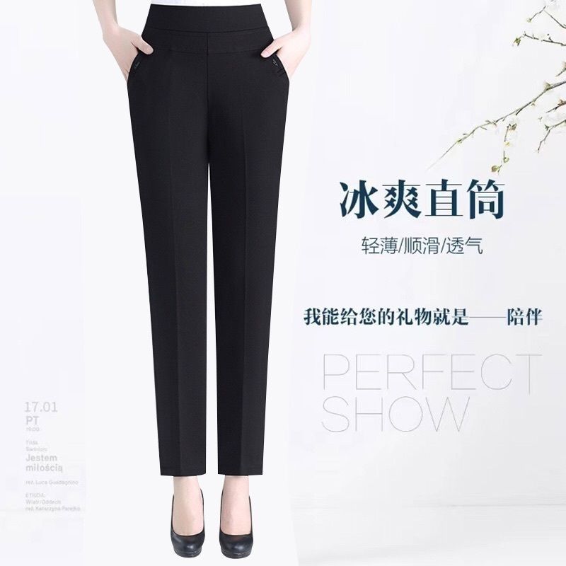 여름 엄마 바지 높은 허리 스트레이트 중년 및 노인 여성 바지 느슨한 플러스 사이즈 스트레치 캐주얼 바지 얇은 외부 착용 바지