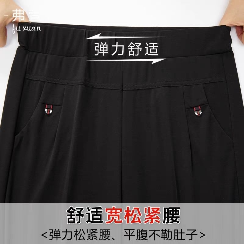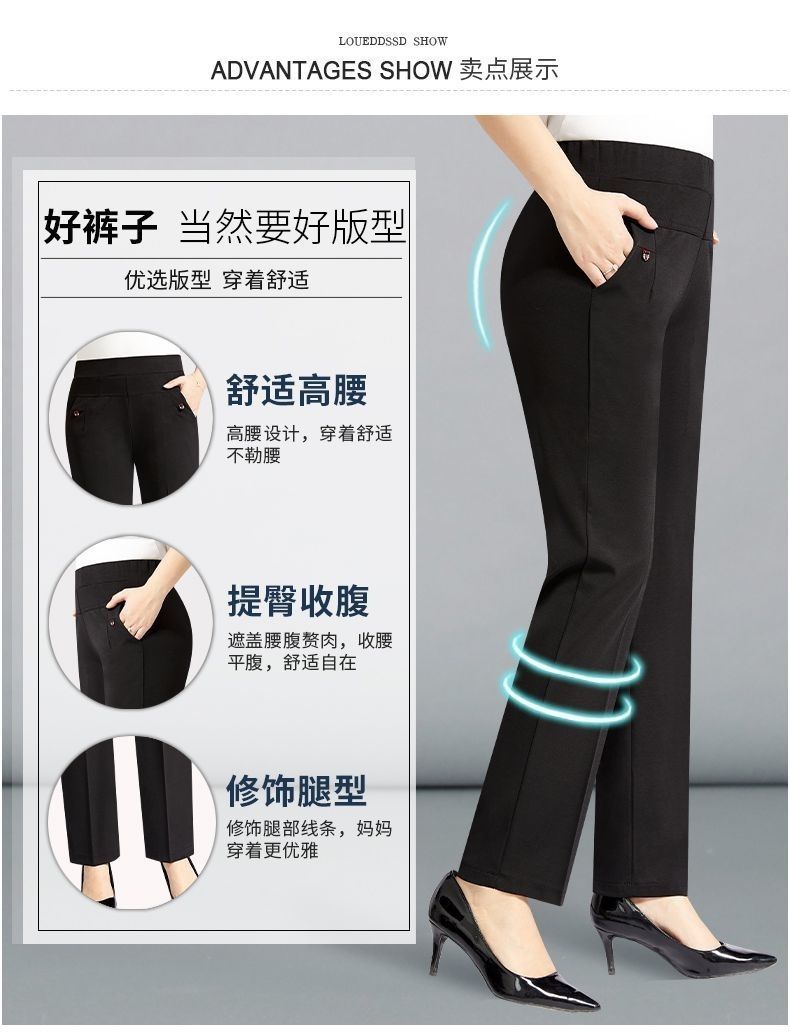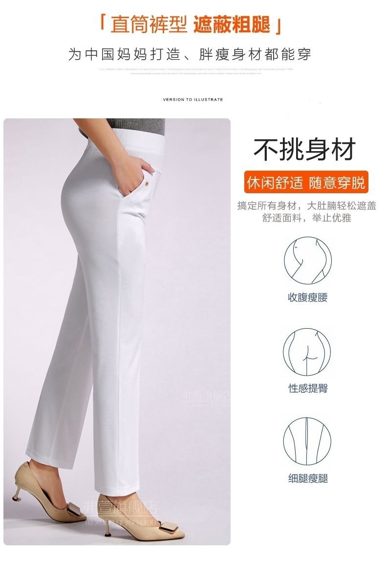 여름 엄마 바지 높은 허리 스트레이트 중년 및 노인 여성 바지 느슨한 플러스 사이즈 스트레치 캐주얼 바지 얇은 외부 착용 바지스토어 가기