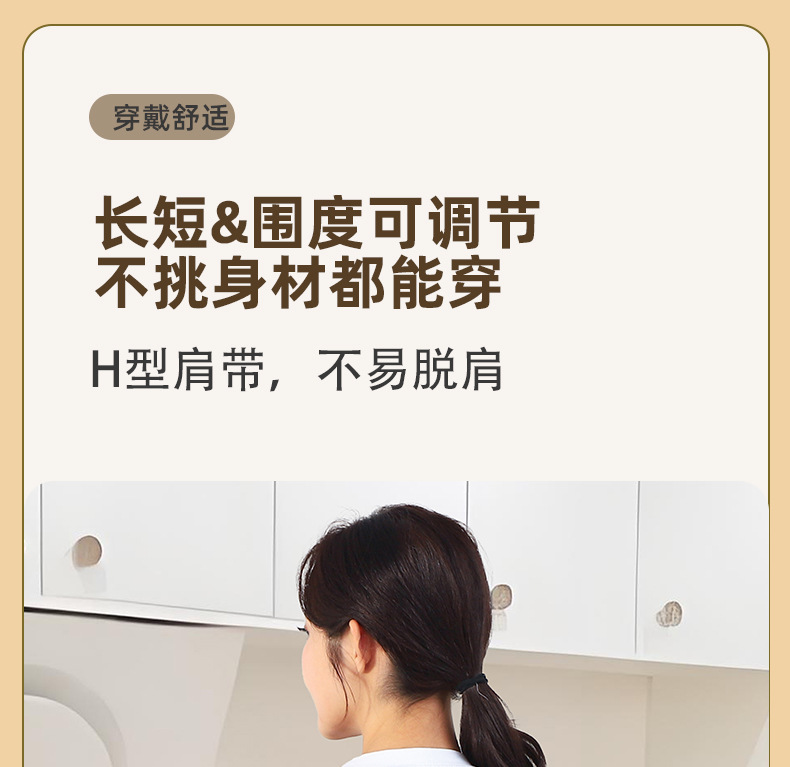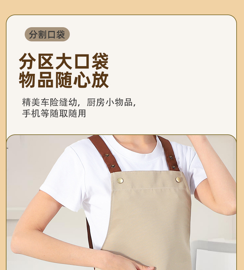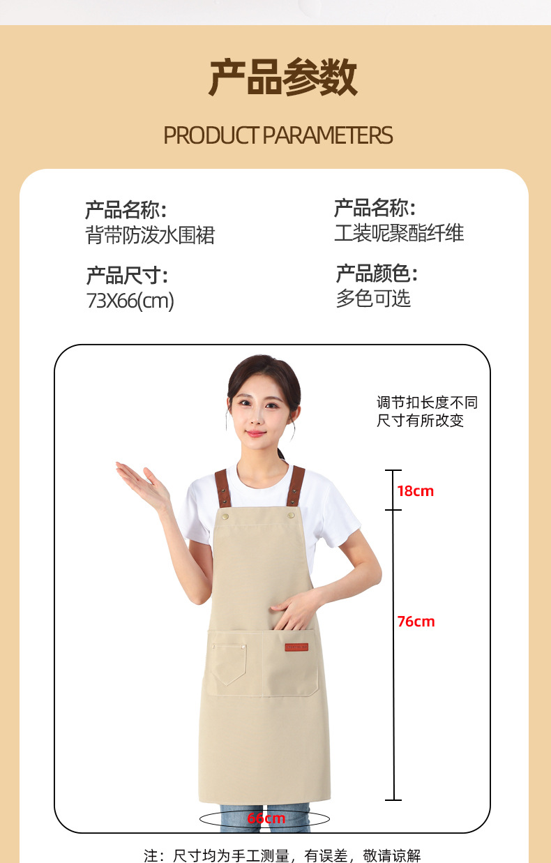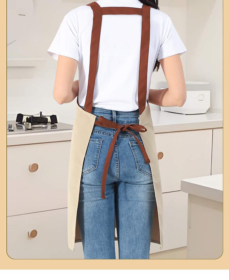 • 조절 가능한 베이지색 서스펜더 앞치마