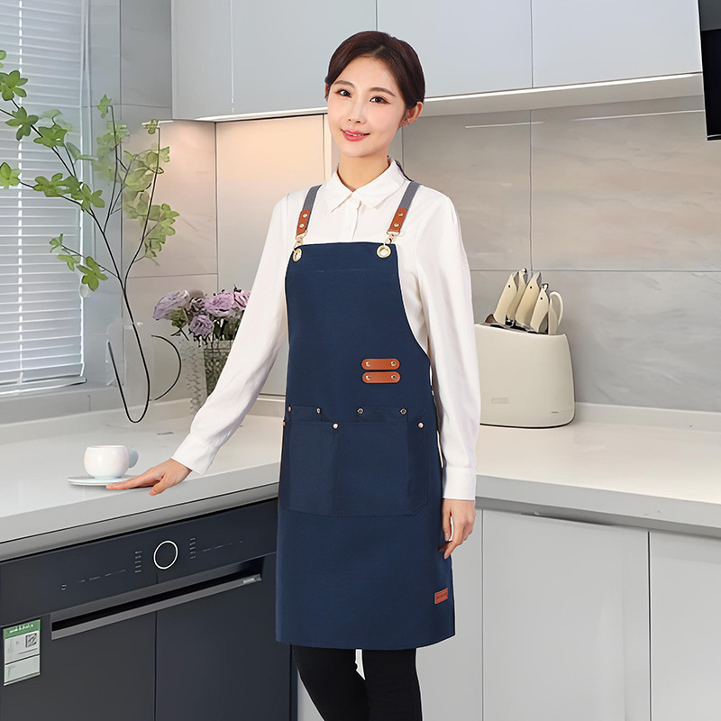 • 조절 가능한 네이비 블루 서스펜더 앞치마