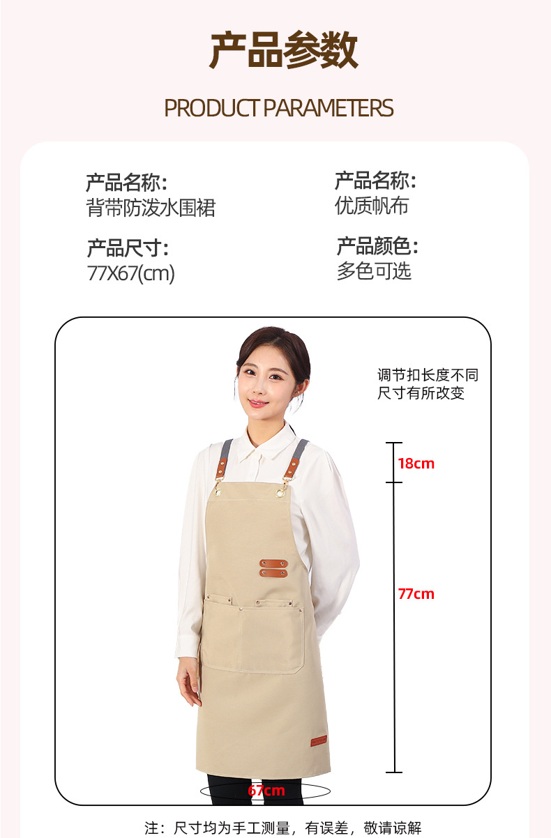 방수 캔버스 앞치마 케이터링 앞치마 호텔 주방 밀크티 커피 숍 웨이터 작업복 여성용 방수 앞치마