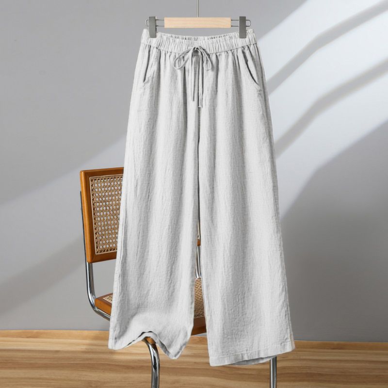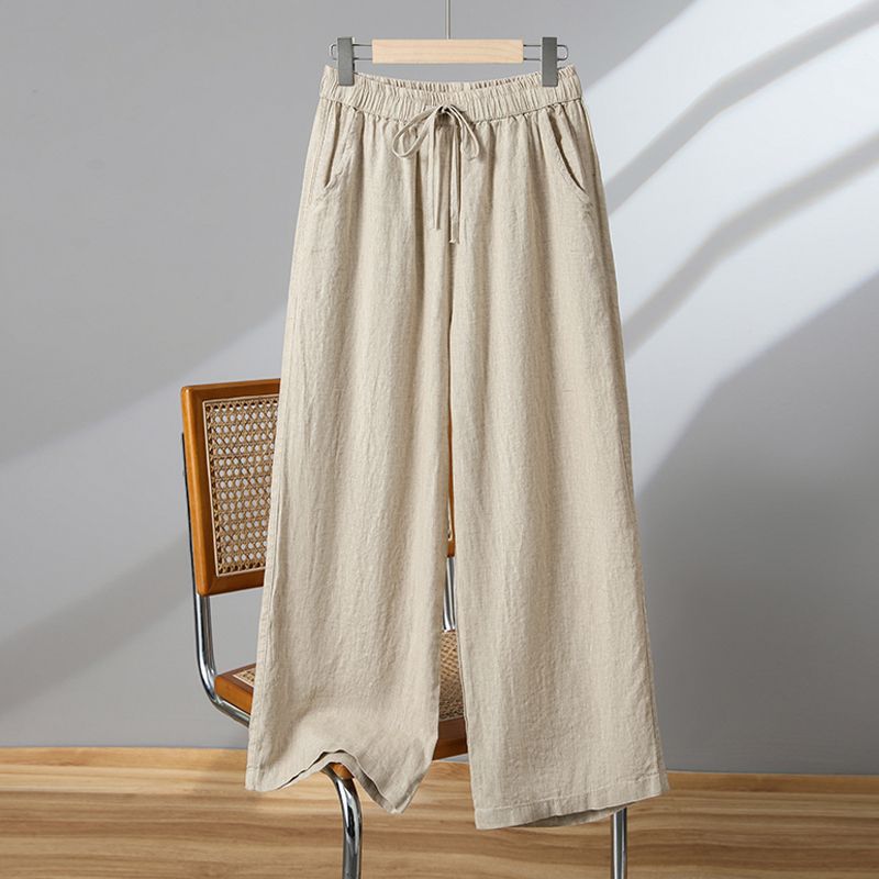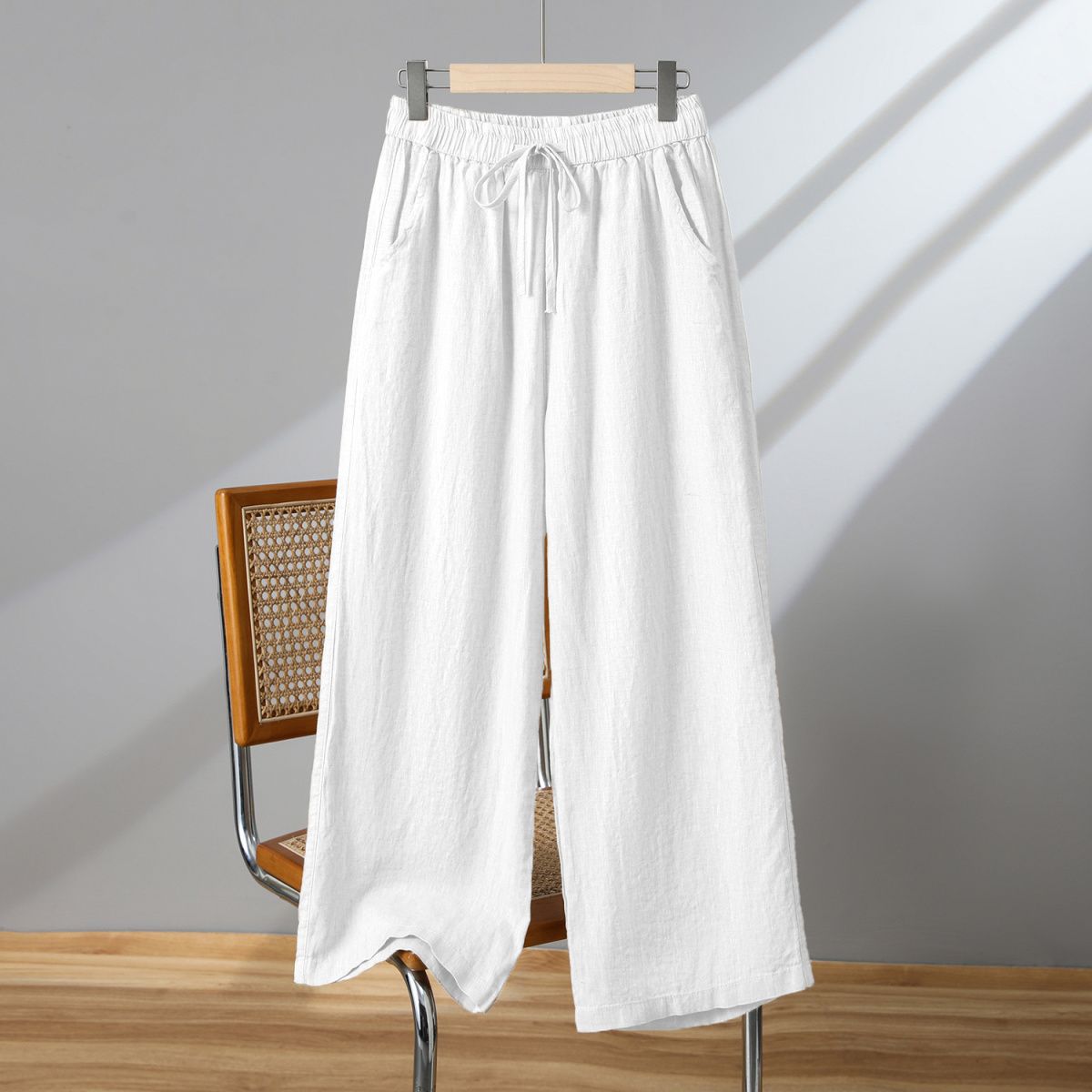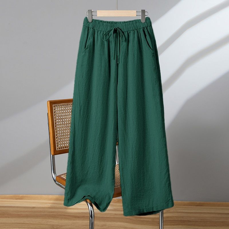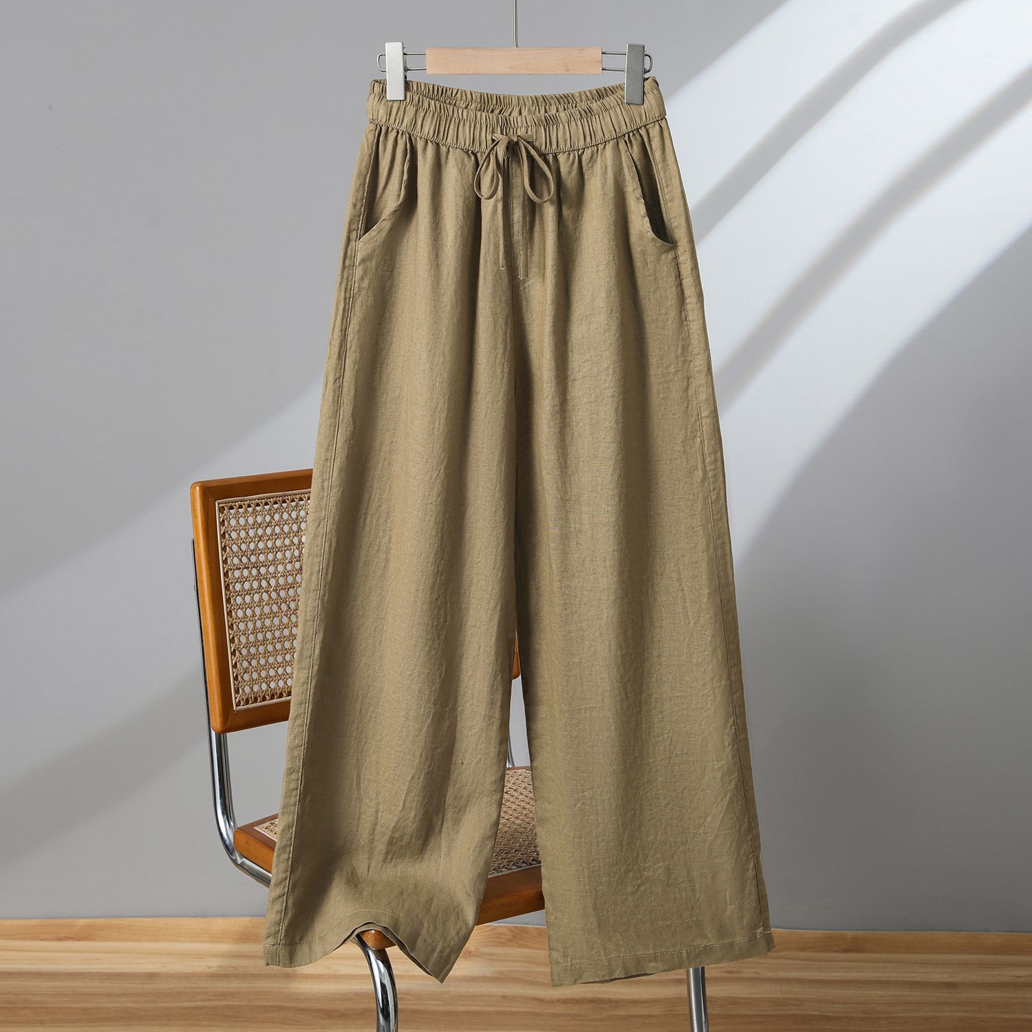 여름 예술적 코튼 리넨 캐주얼 바지 단색 느슨한 허리 넓은 다리 바지 슬리밍 여성용 넓은 다리 바지 플러스 사이즈 느슨한 발목 길이 바지
