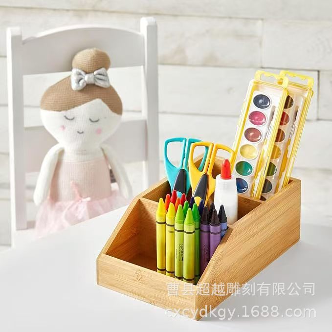 다중 그리드가있는 대나무 펜 홀더 보관 상자 연필 브러시 보관 상자 데스크탑 원격 제어 보관 및 정리 책상 보관 상자스토어 가기