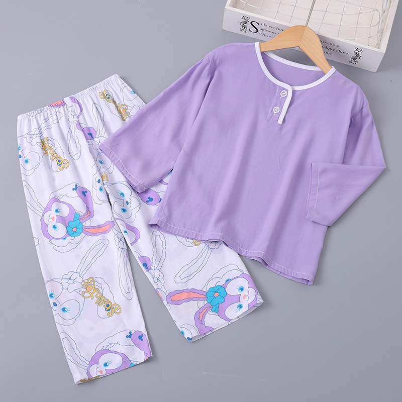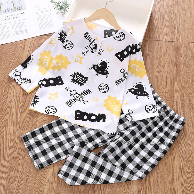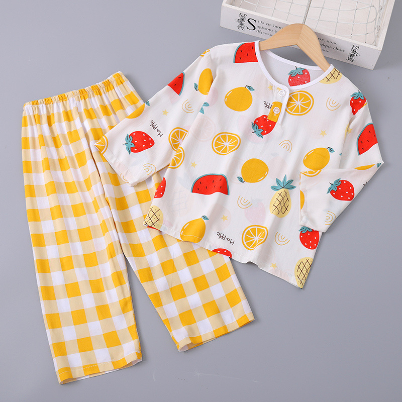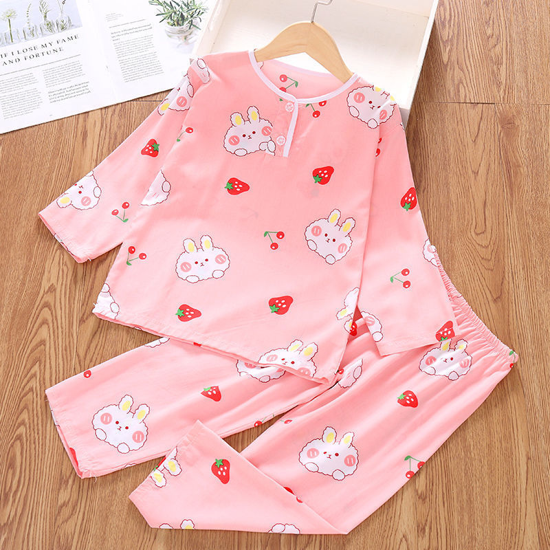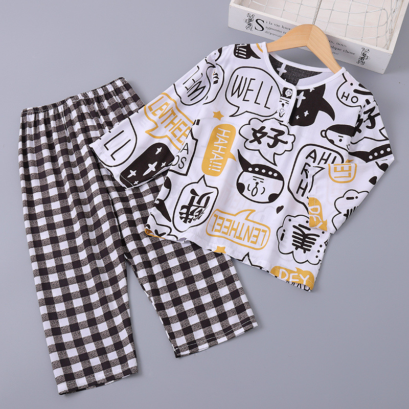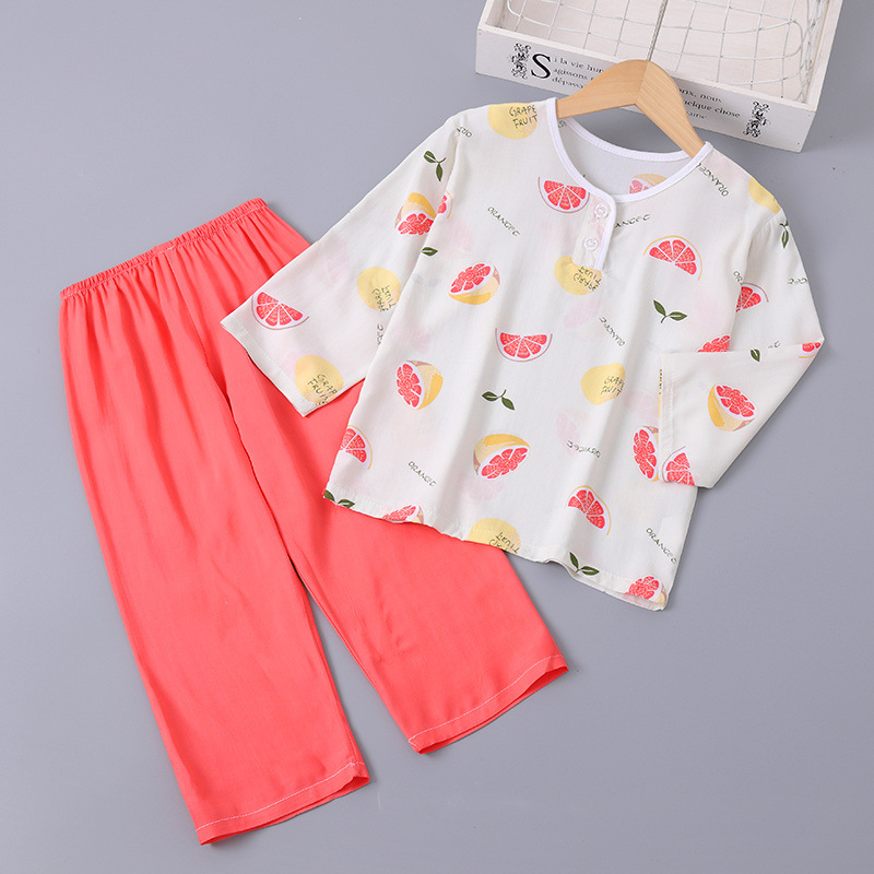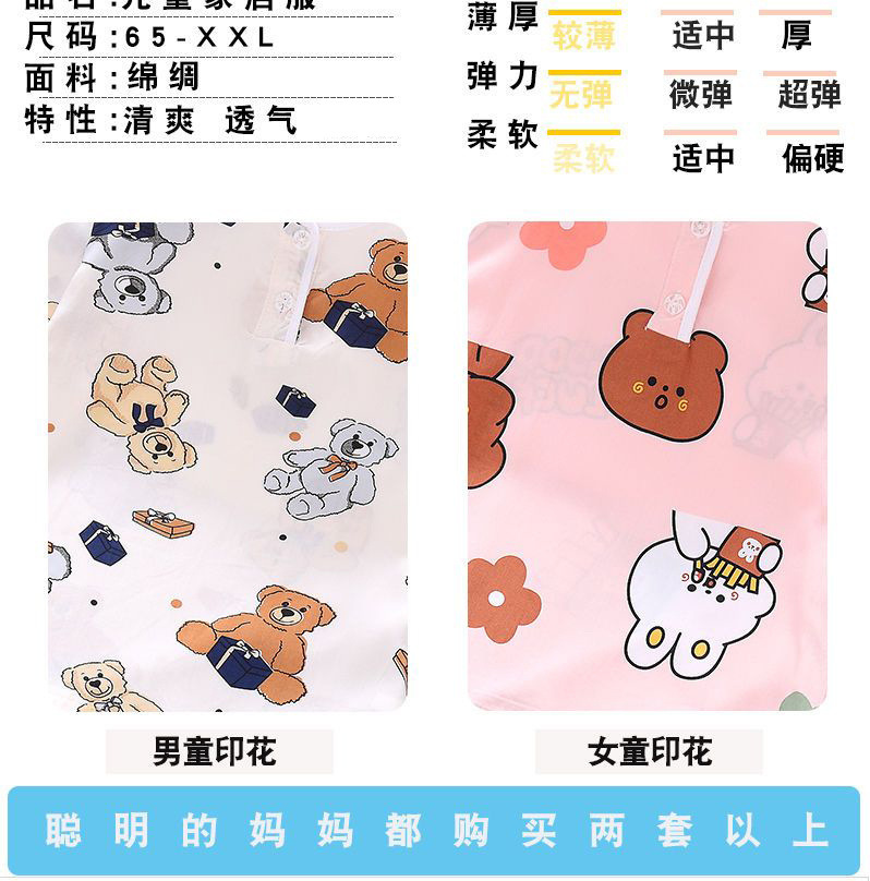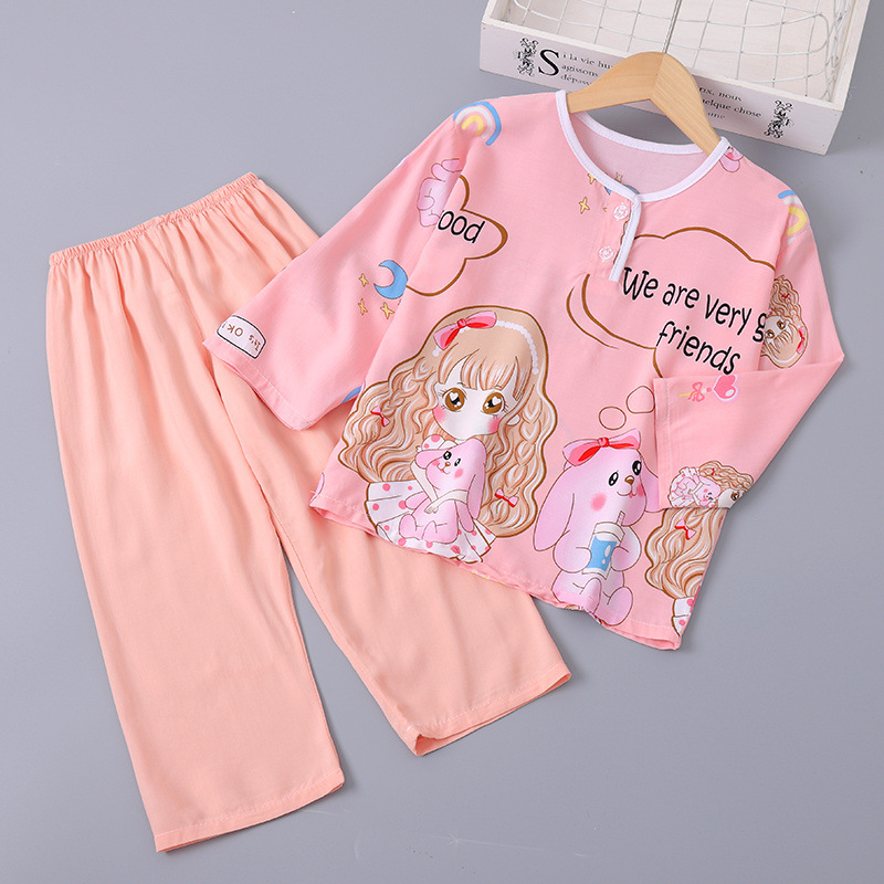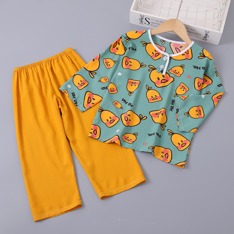 소년과 소녀를위한 여름 어린이 면화 실크 잠옷 아기 면화 실크 긴팔 여름 얇은 에어컨 옷 가정 의류 세트스토어 가기