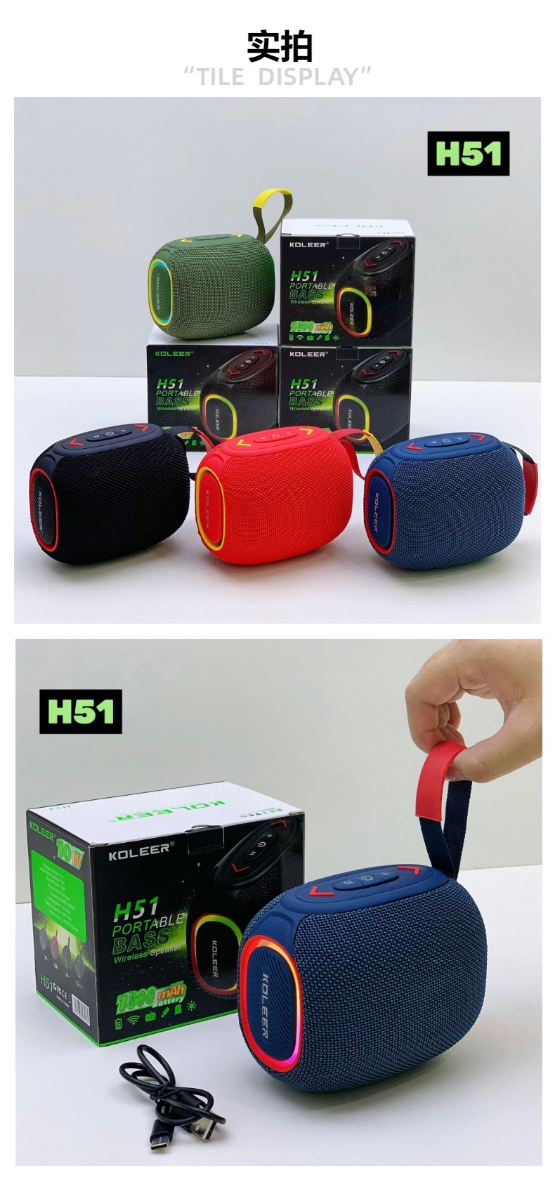 KOLEER 새로운 H51 휴대용 블루투스 오디오 야외 서브 우퍼 휴대용 TWS 데스크탑 다기능 스피커