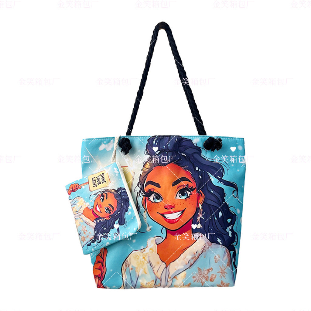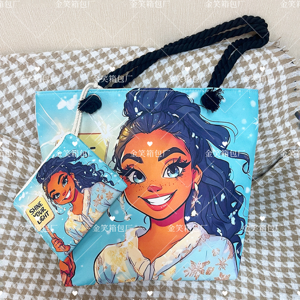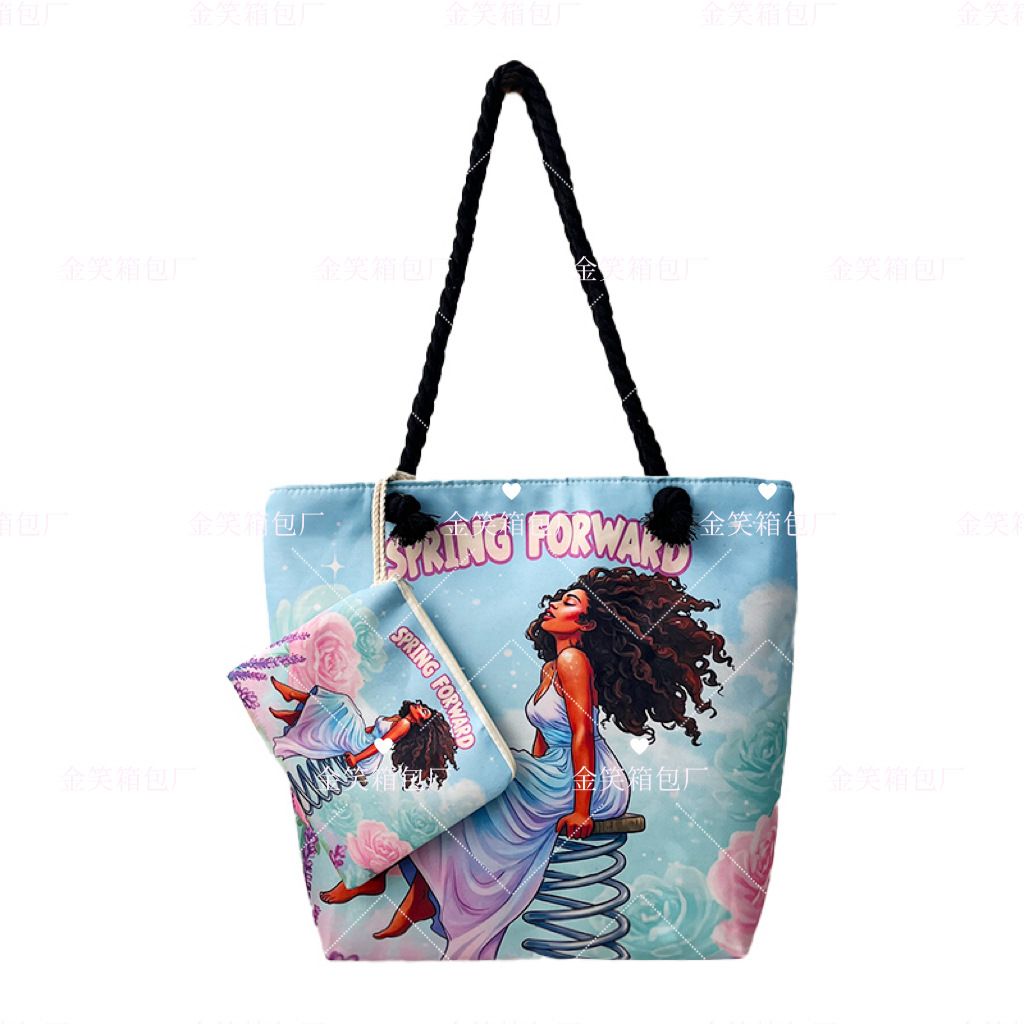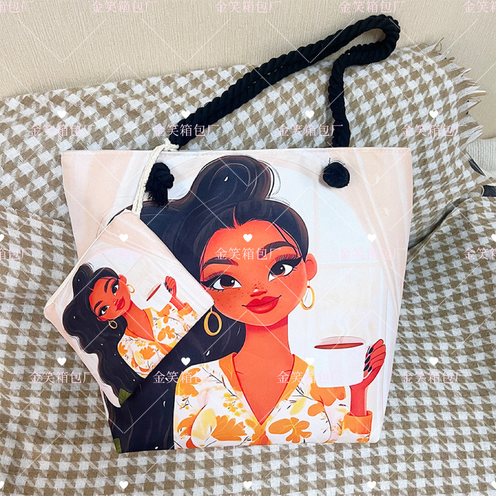 2025 새로운 해변 가방 여행 보관 핸드백 대용량 어깨 가방 캔버스 가방 멋진 검은 소녀 재고