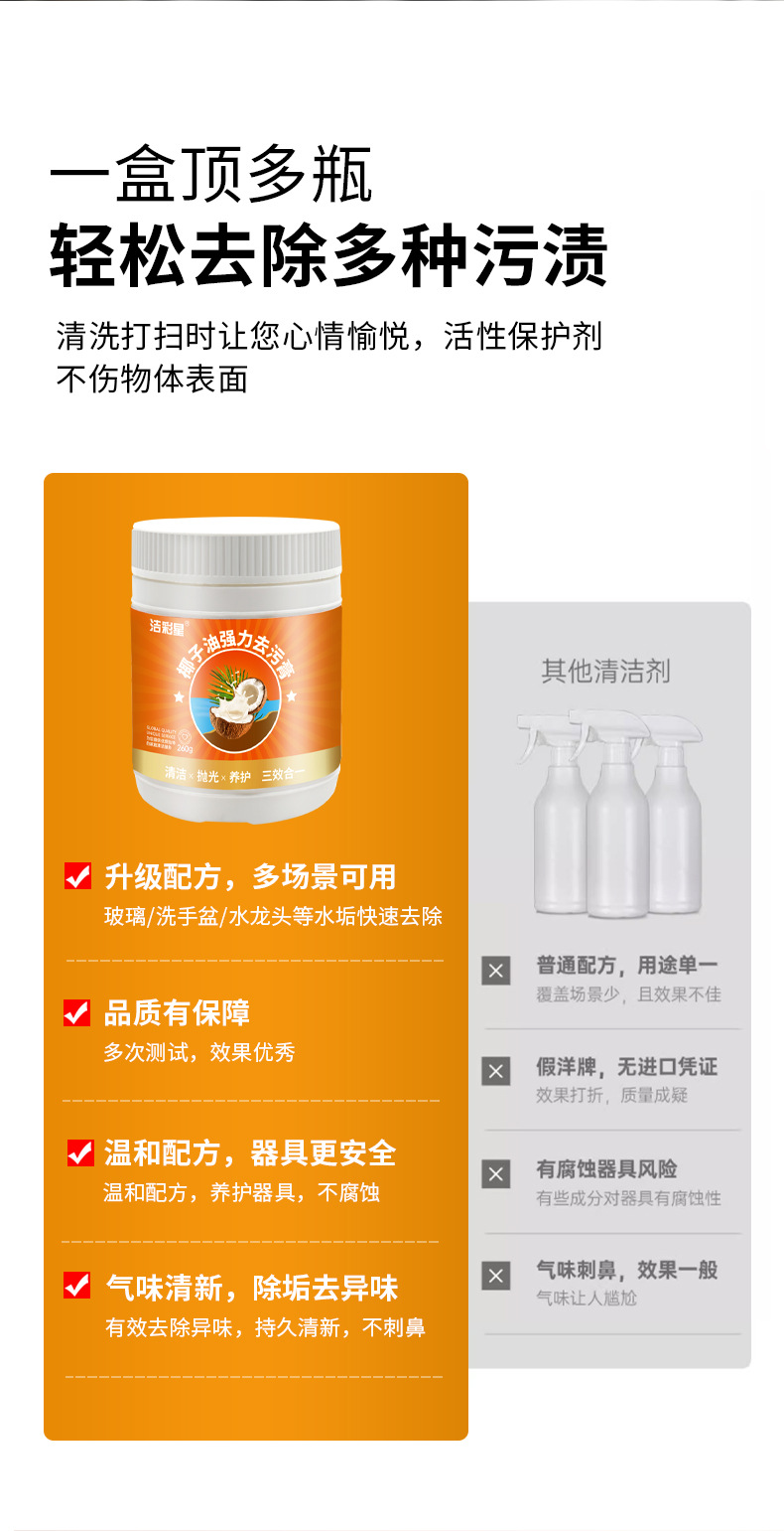 유해한 코코넛 오일 없음 강한 얼룩 청소 크림 욕실 바닥 연마 가정용 타일 청소 스테인레스 스틸 청소 크림