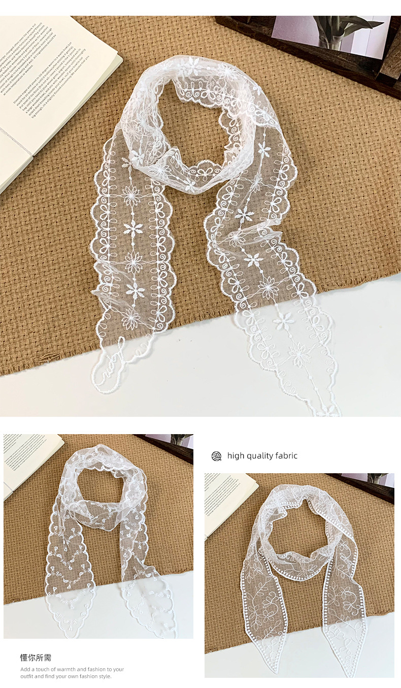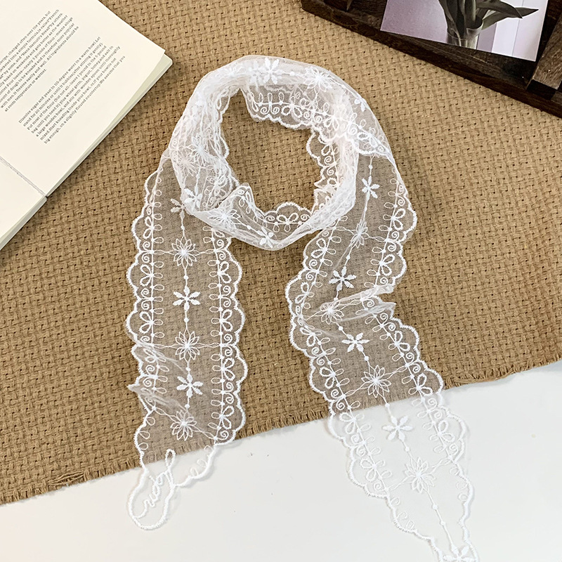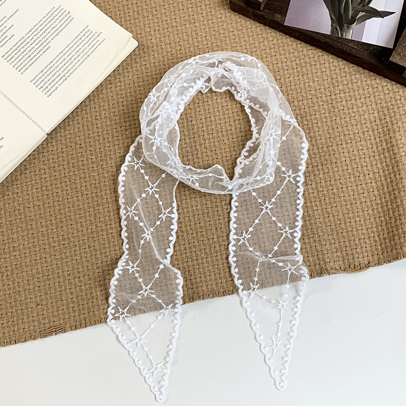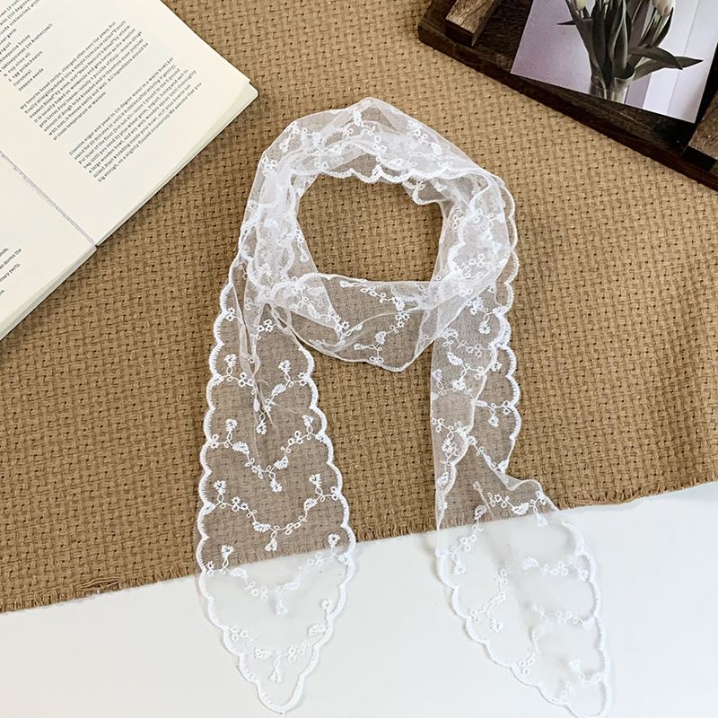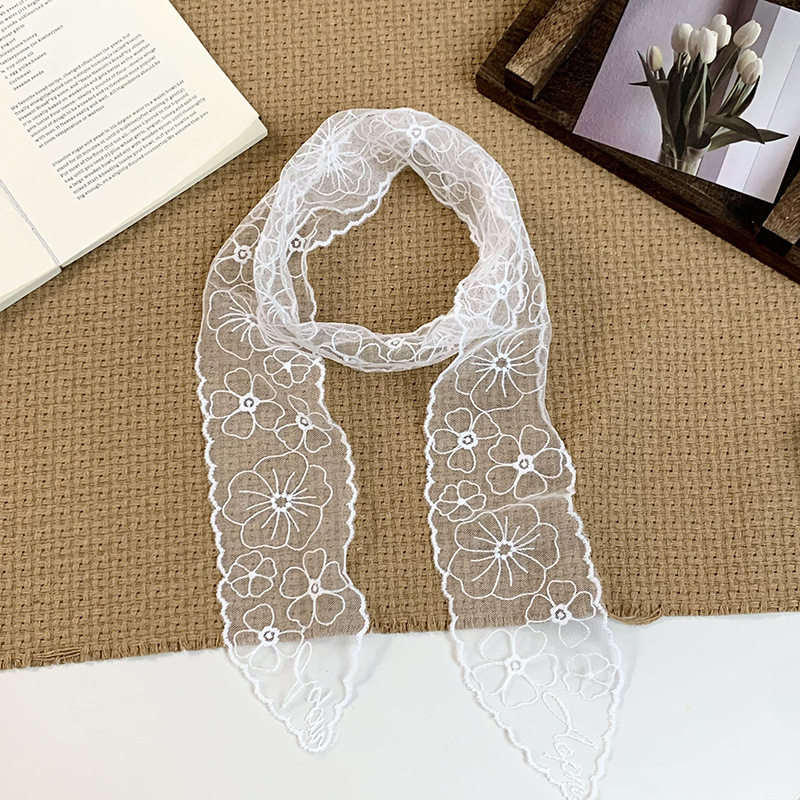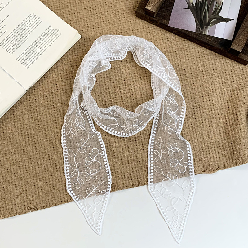 실크 스카프 긴 하이 엔드 감각 한국 아트 스카프 작은 신선한 패션 헤어 벨트 뾰족한 레이스 실크 스카프 허리 밴드 벨트