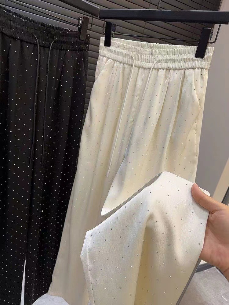 높은 허리 Silky Satin 넓은 다리 바지 여성용 느슨한 여름 새 스타일 딥 느낌 Gipsophila 드릴 스트레이트 바지