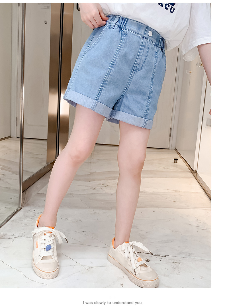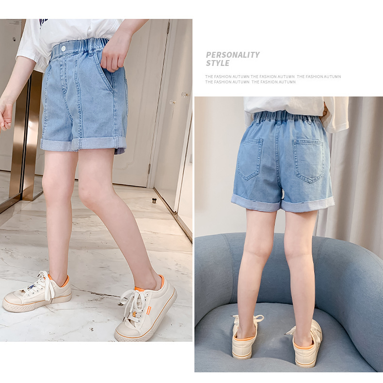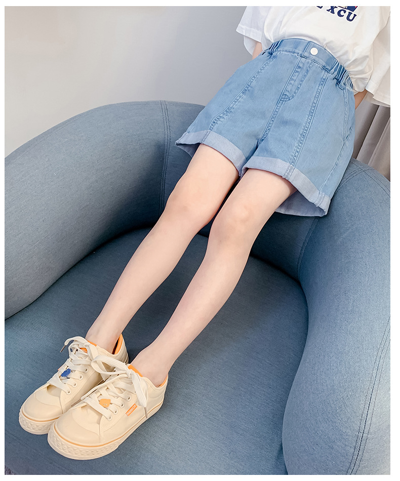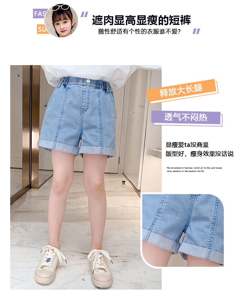 여름 얇은 데님 반바지 여아 아동 중학생 여름 2025 하이웨이스트 디자인