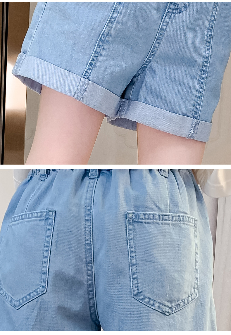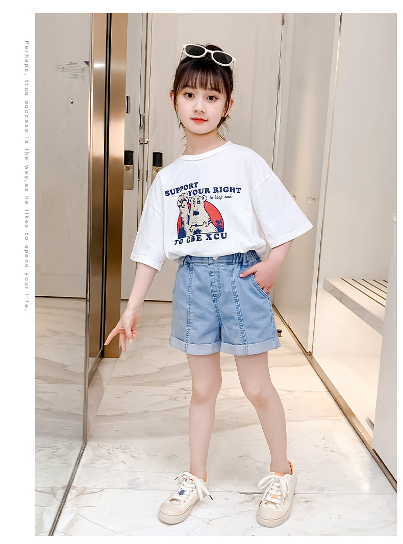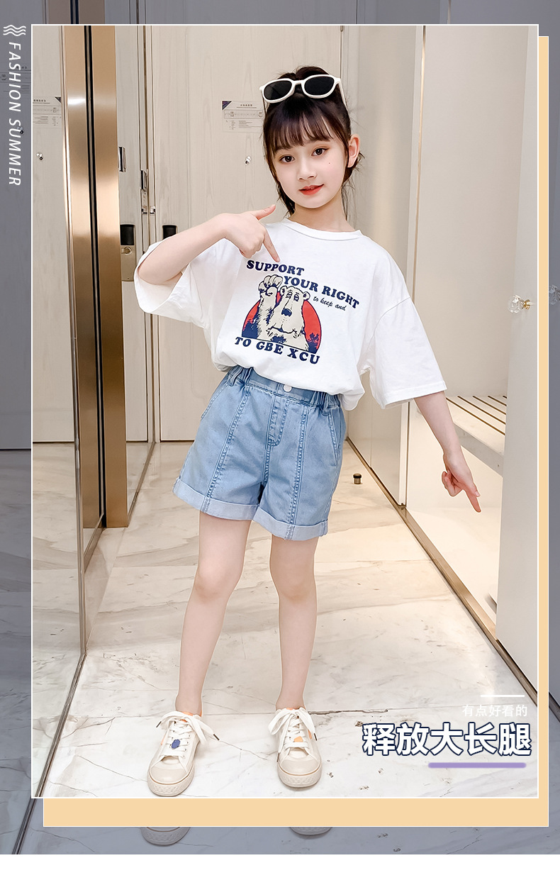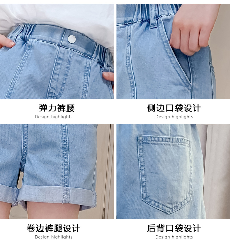 여름 얇은 데님 반바지 여아 아동 중학생 여름 2025 하이웨이스트 디자인