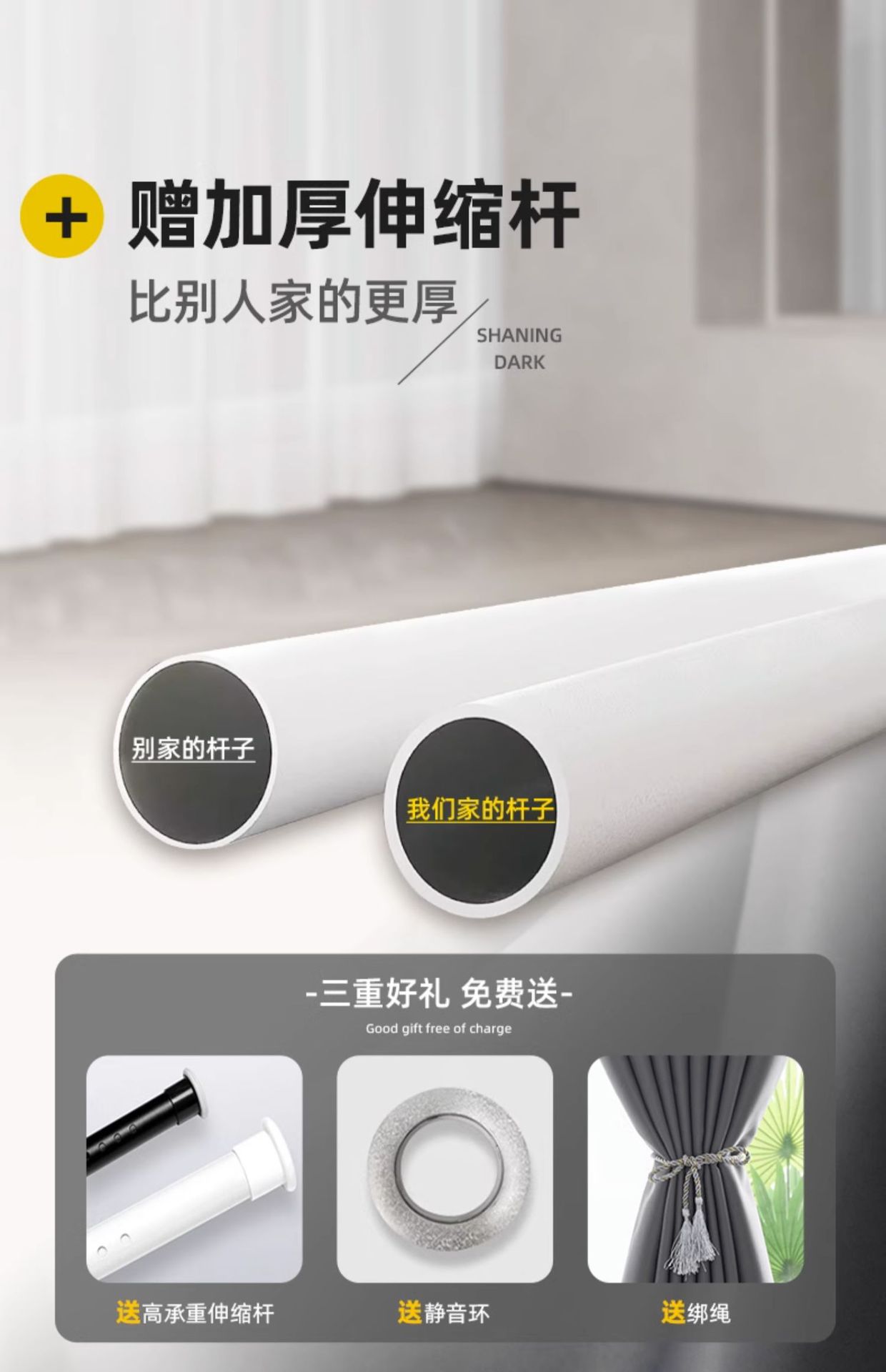 • [적용 범위 3.6- 4.1m ] [커튼 높이 2.7m ] [이중 개구부] 텔레스코픽 로드 포함