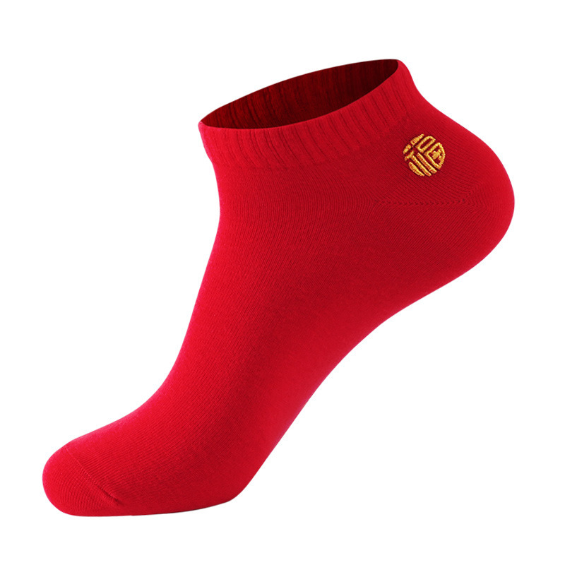 Hengyuanxiang 남성과 여성의 큰 빨간 보트 양말 올해 웨딩 해피 양말 보이지 않는 양말 공장 도매스토어 가기