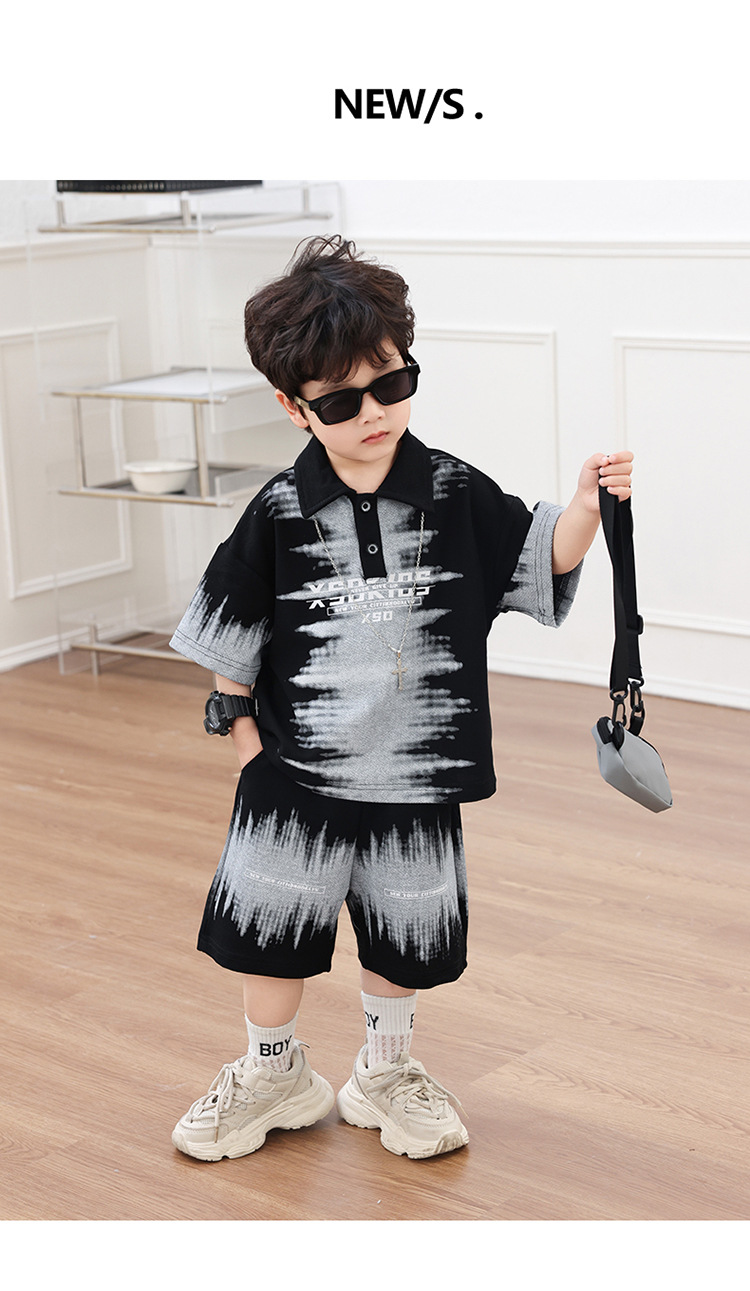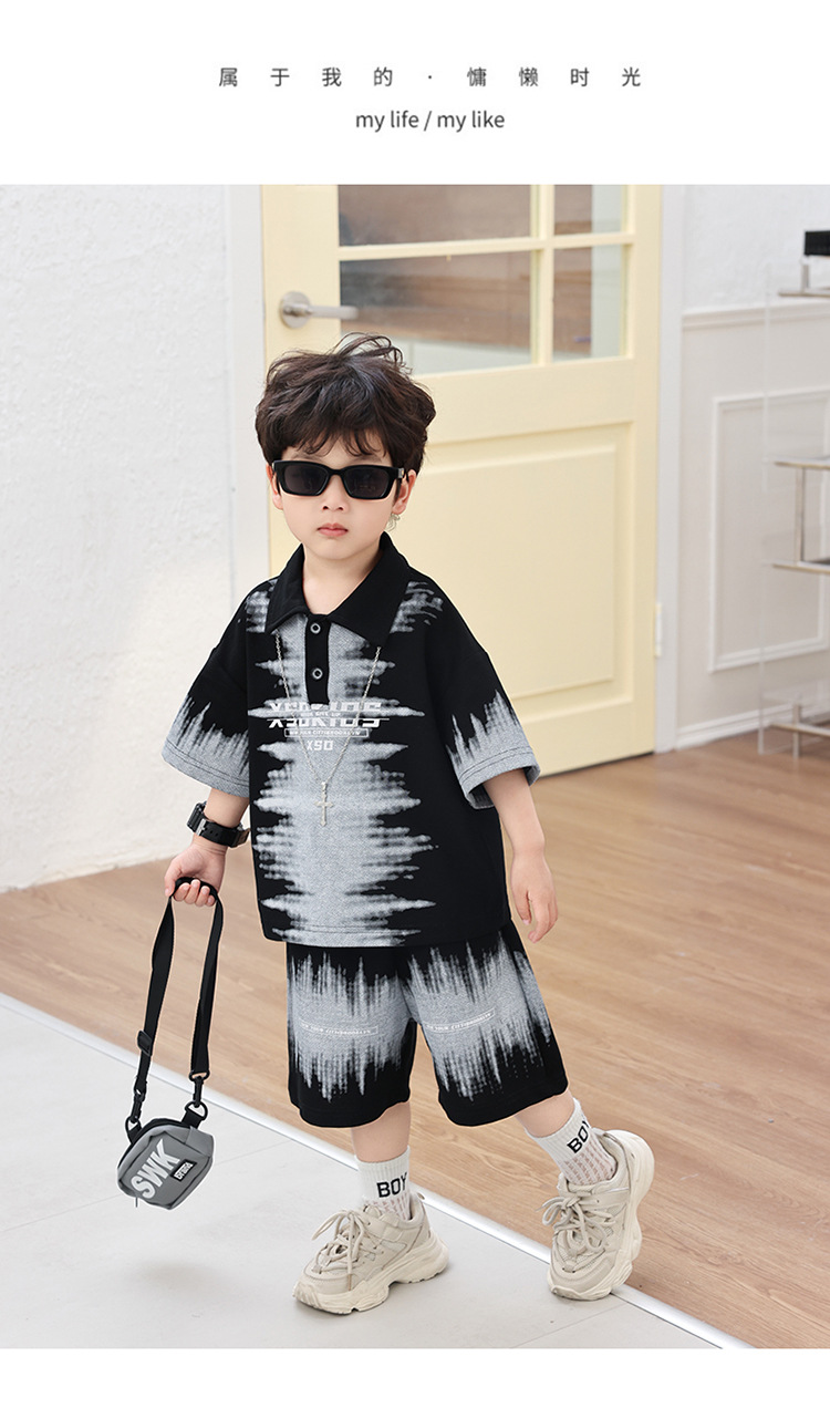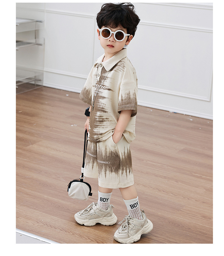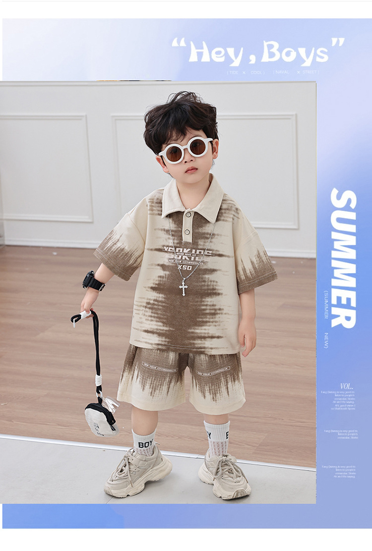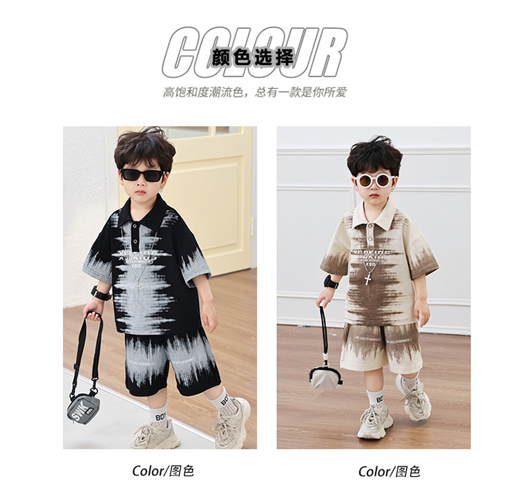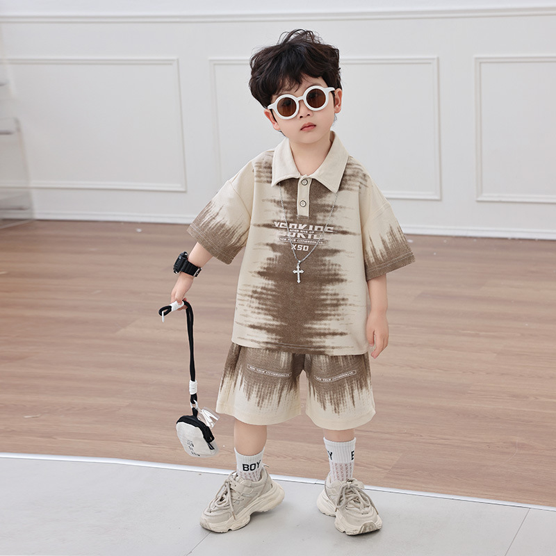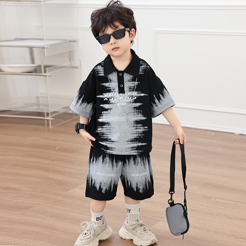 소년의 풀 프린트 폴로 셔츠 세트 여름 어린이 반팔 캐주얼 스포츠 세트 대외 무역을위한 소년의 잘 생긴 옷스토어 가기
