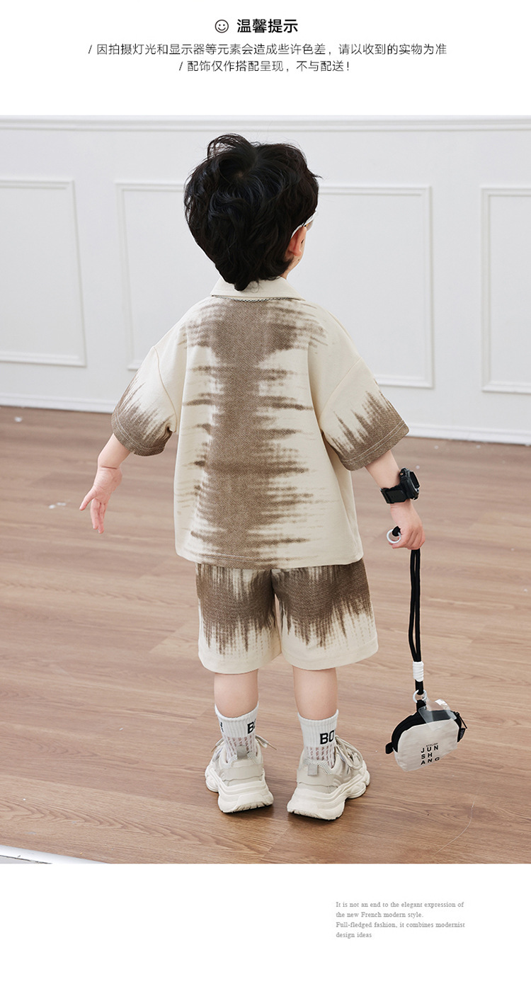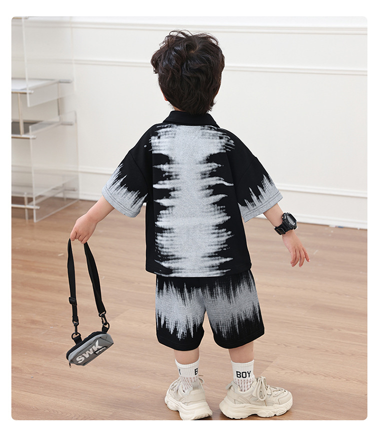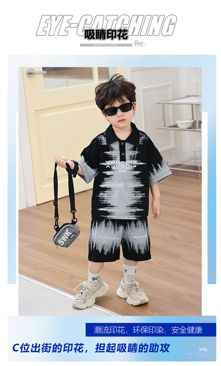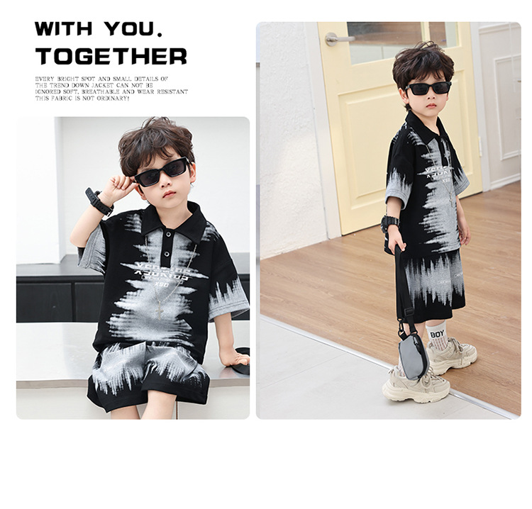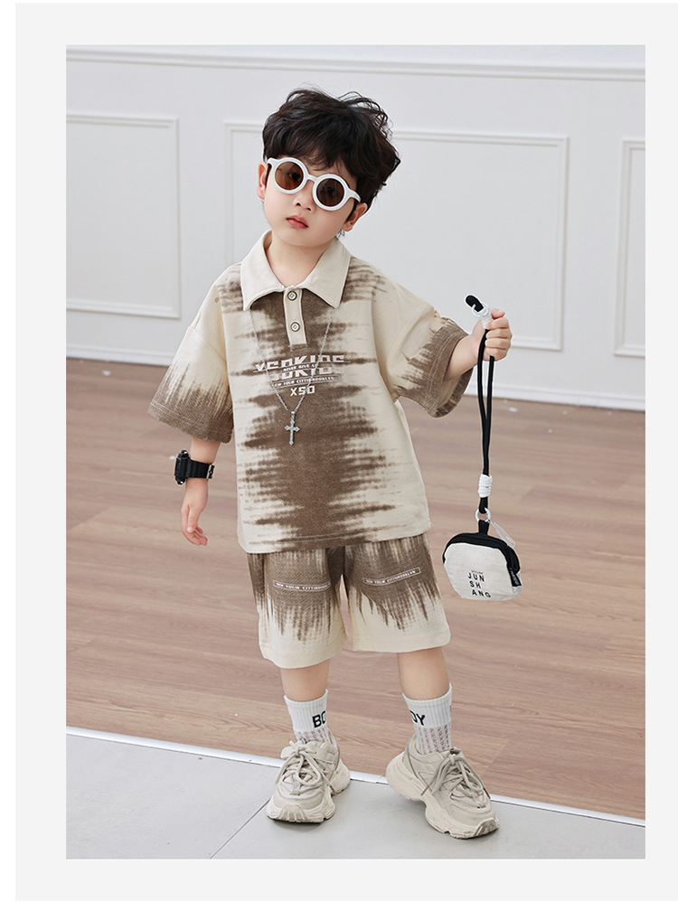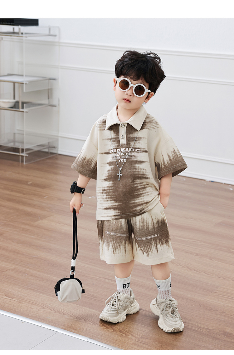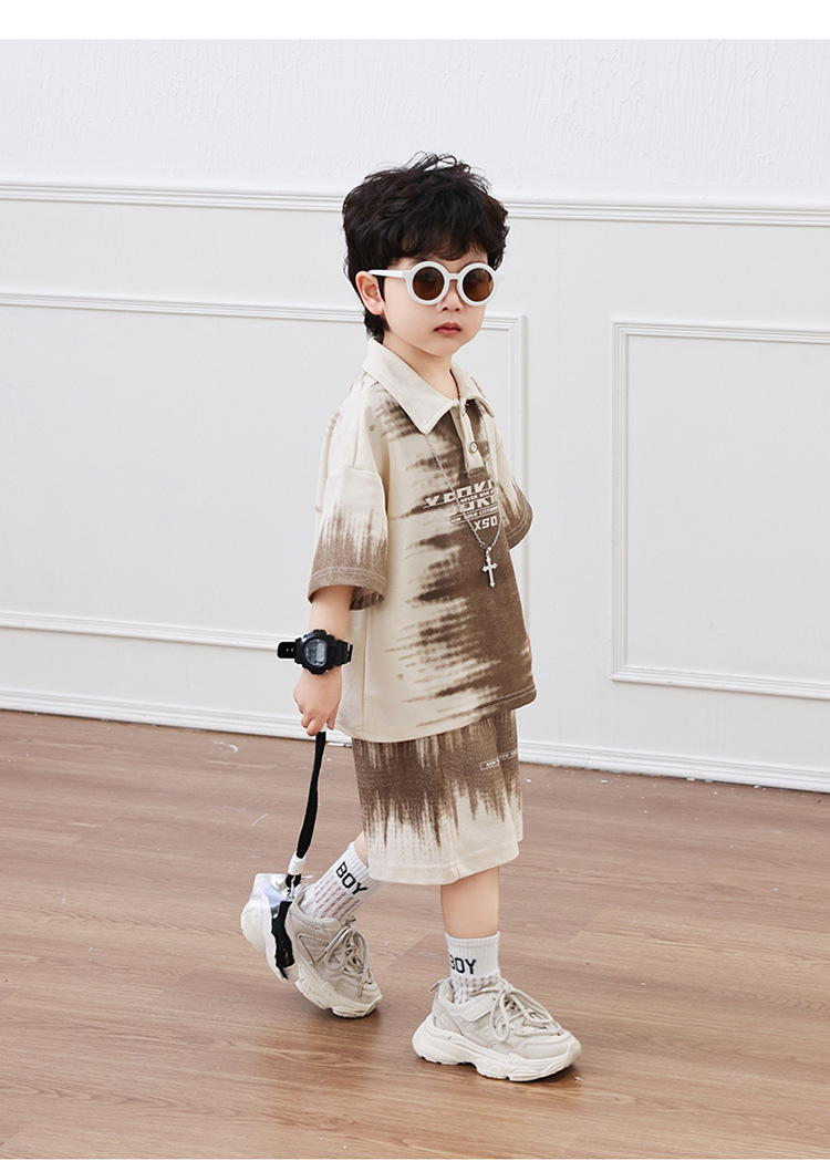 소년의 풀 프린트 폴로 셔츠 세트 여름 어린이 반팔 캐주얼 스포츠 세트 대외 무역을위한 소년의 잘 생긴 옷스토어 가기