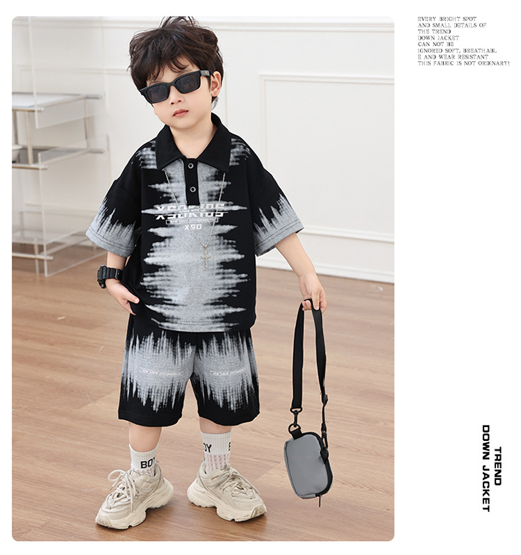소년의 풀 프린트 폴로 셔츠 세트 여름 어린이 반팔 캐주얼 스포츠 세트 대외 무역을위한 소년의 잘 생긴 옷