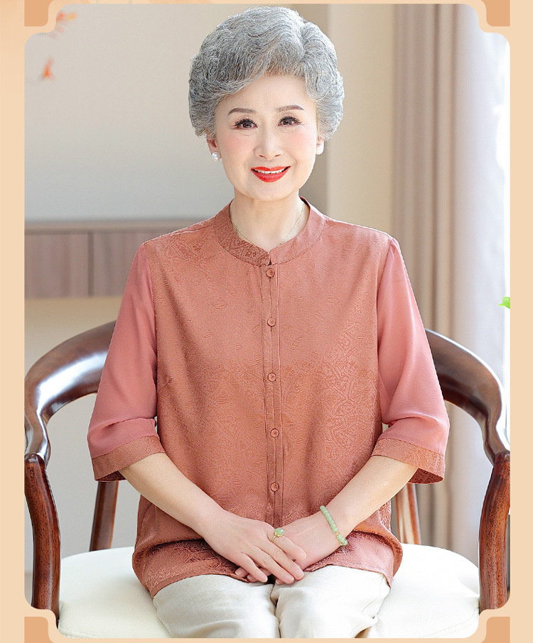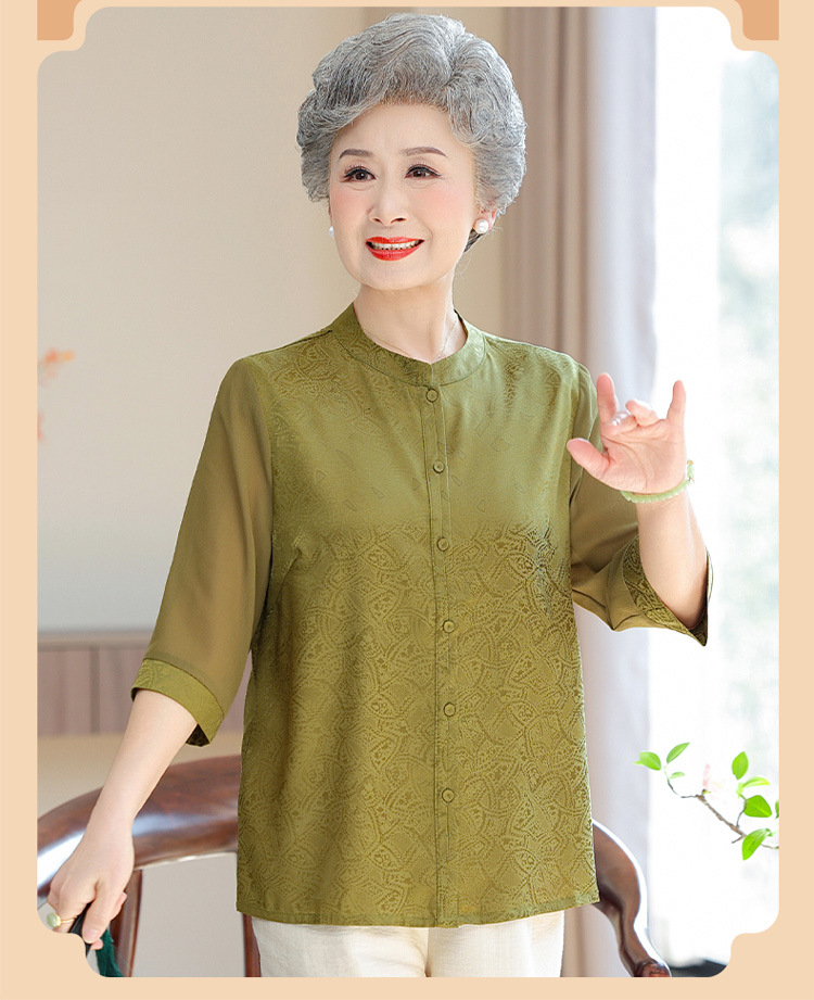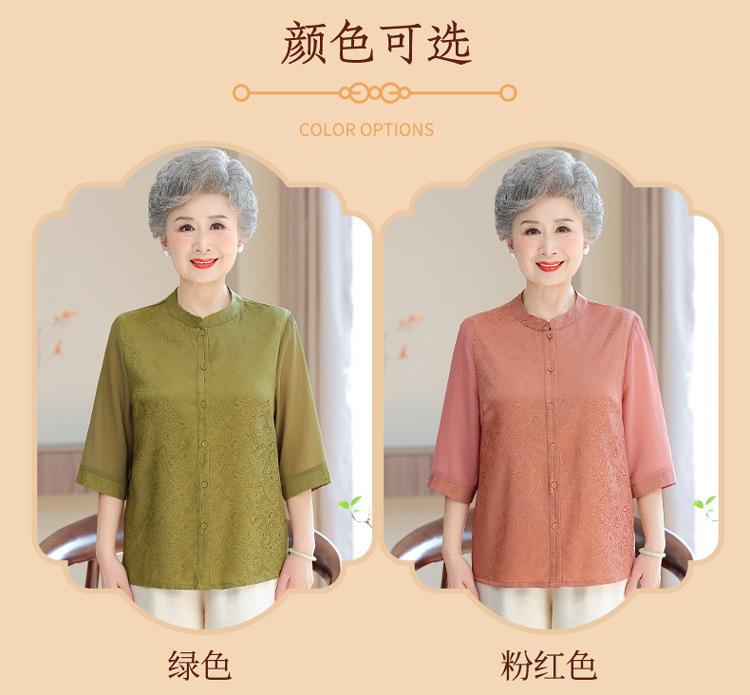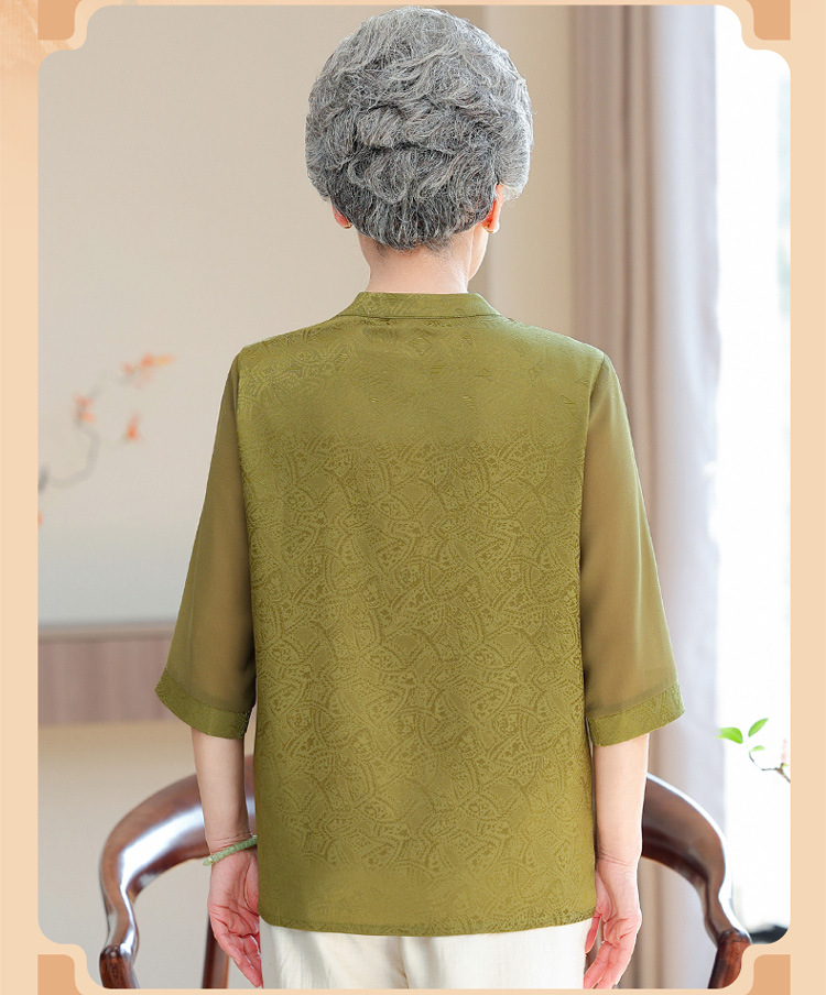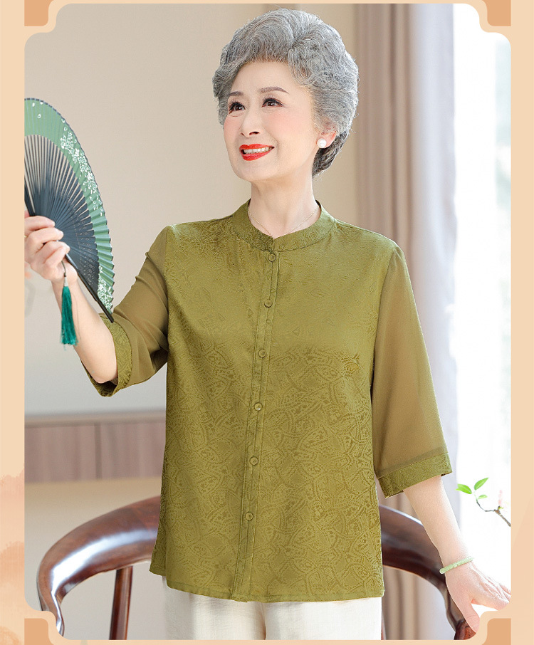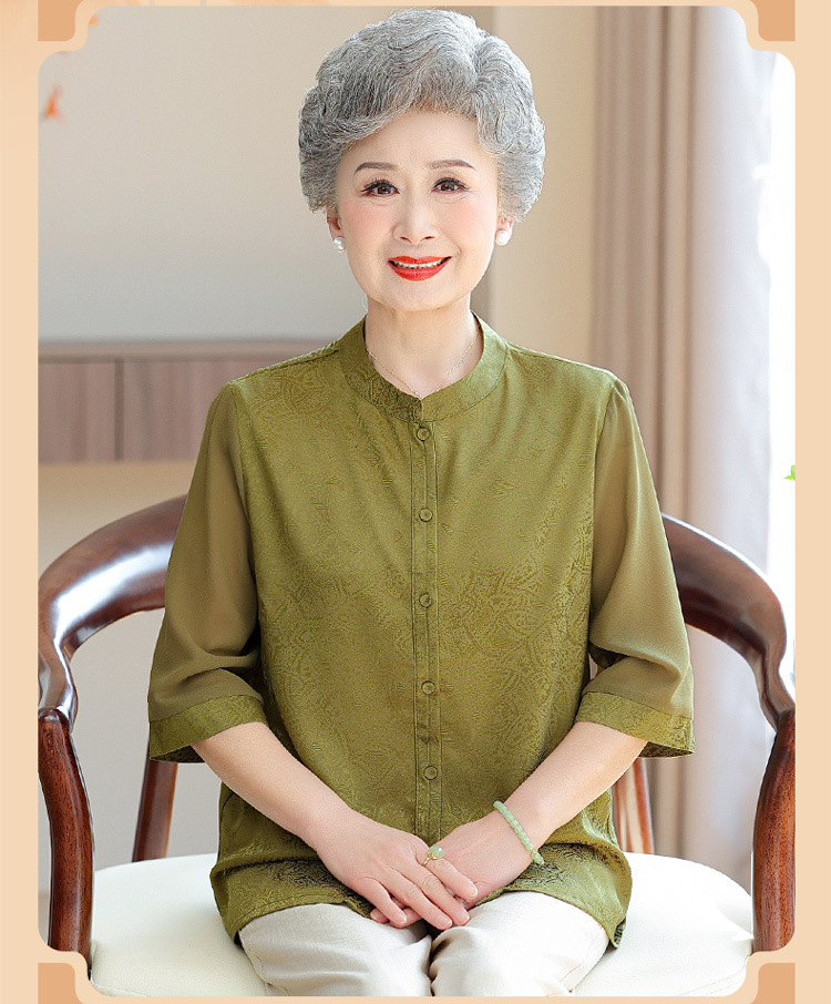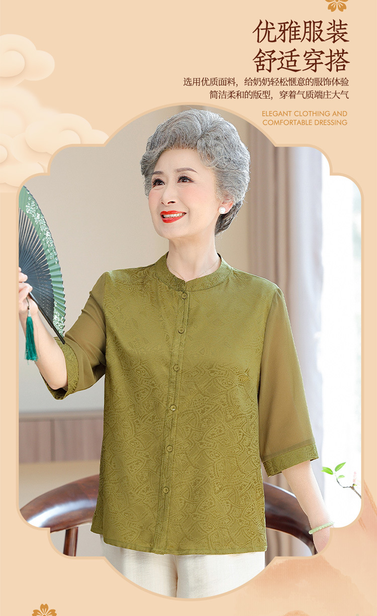 새로운 Guofeng 중년 및 노인 할머니의 7 점 소매 셔츠 카디건 봄과 여름 어머니의 여성 실크 셔츠 루즈 탑