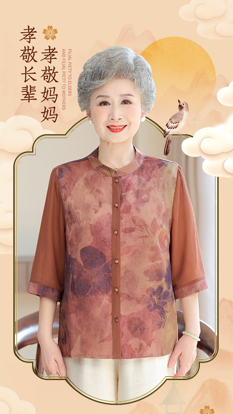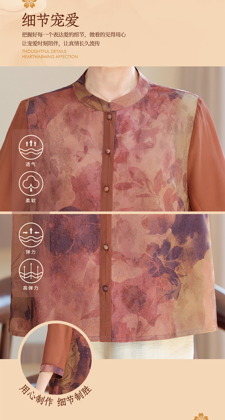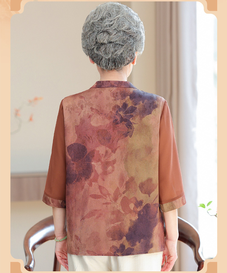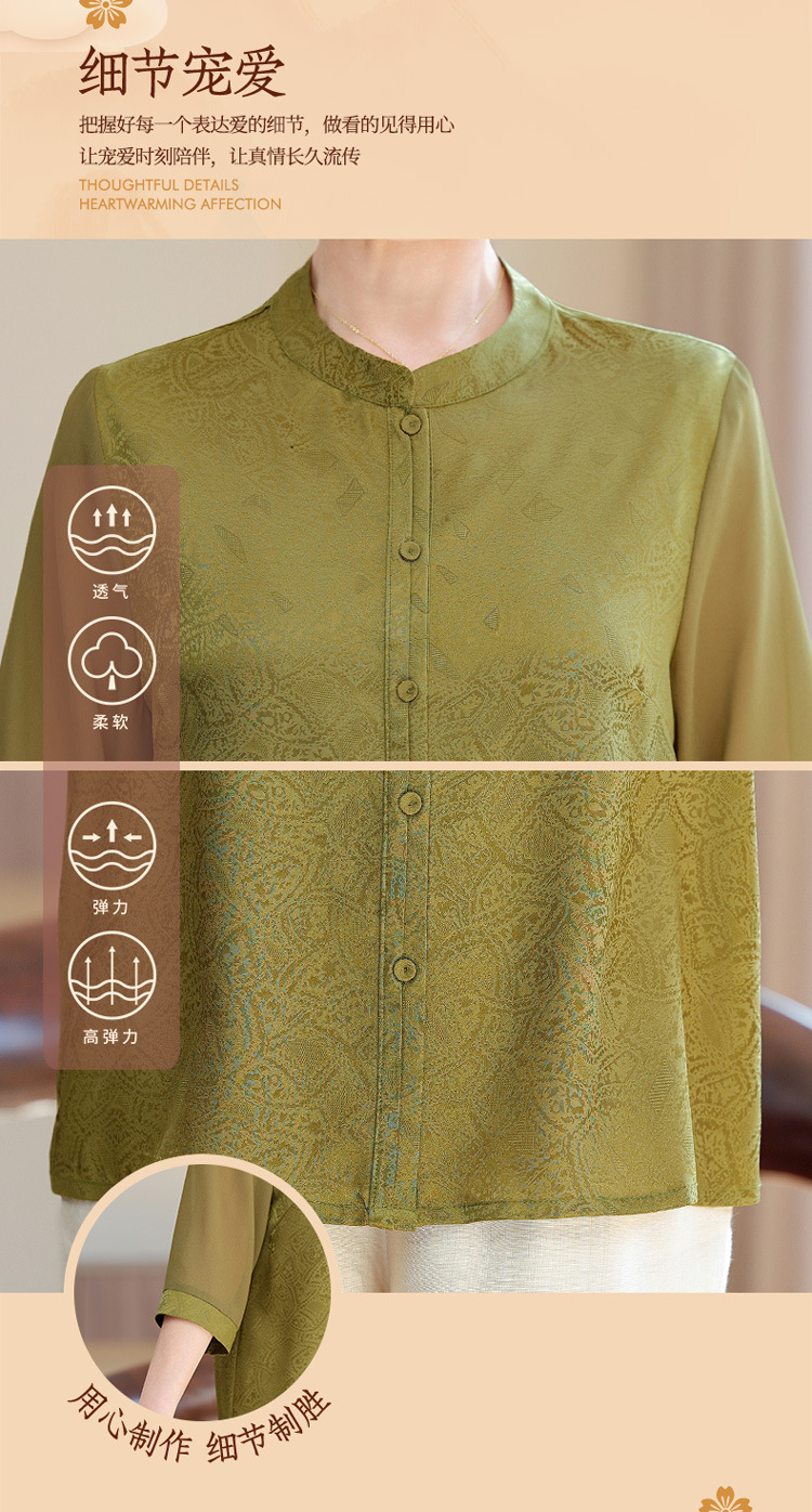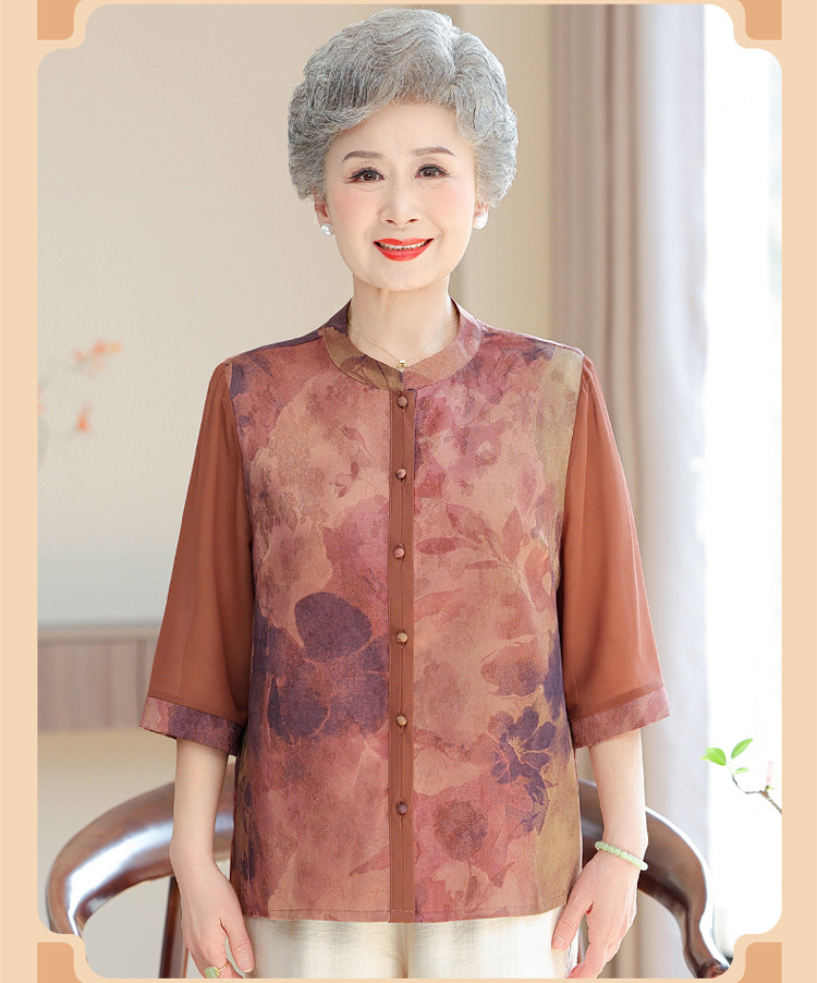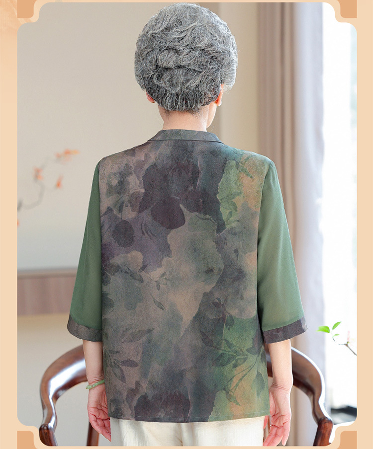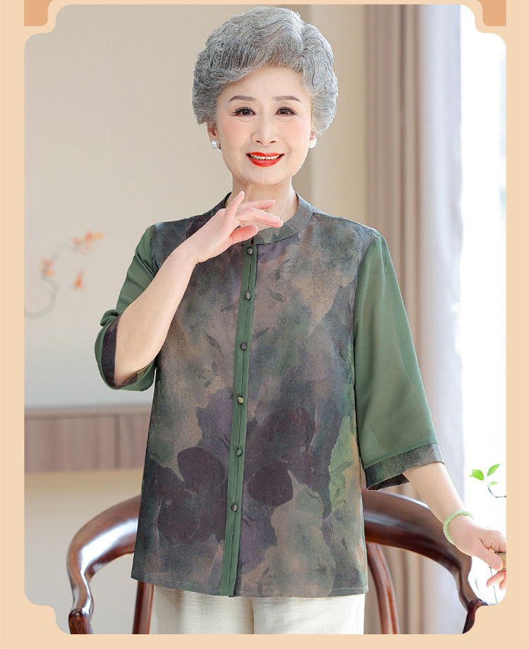 새로운 Guofeng 중년 및 노인 할머니의 7 점 소매 셔츠 카디건 봄과 여름 어머니의 여성 실크 셔츠 루즈 탑