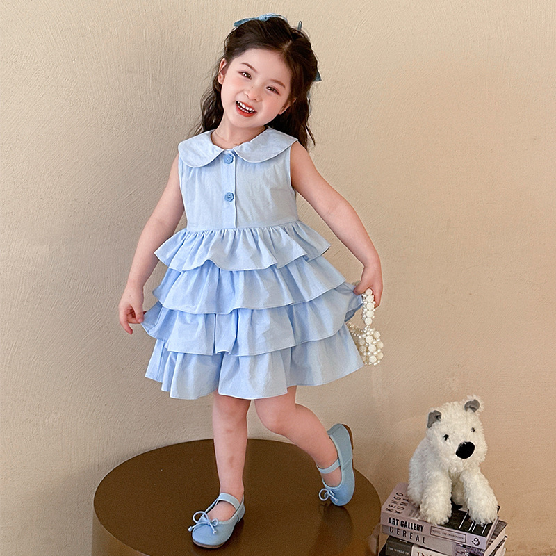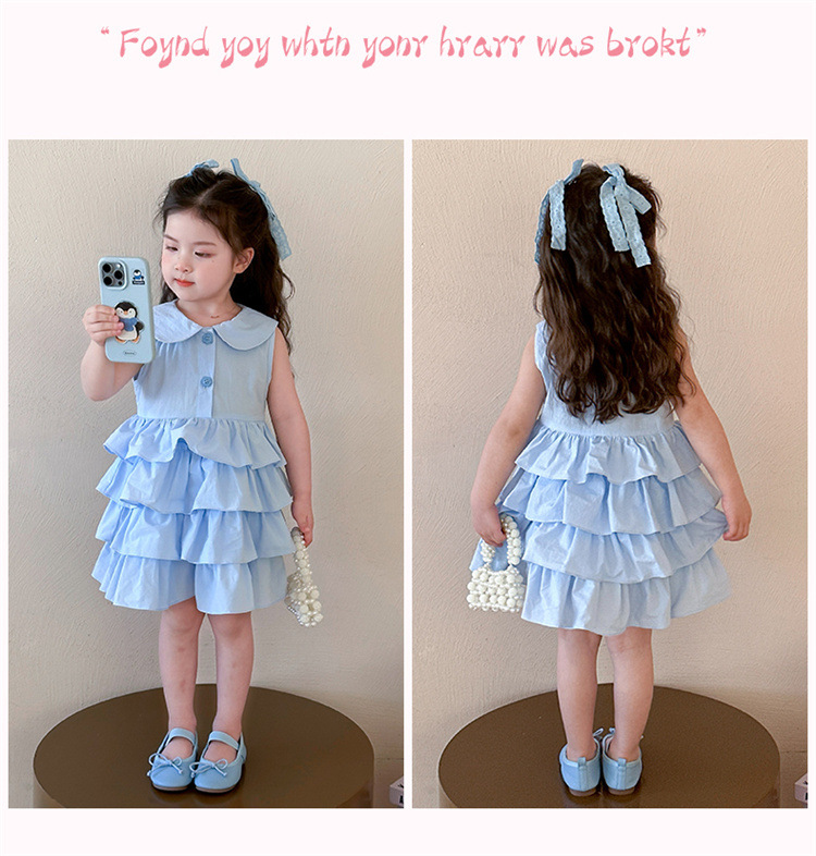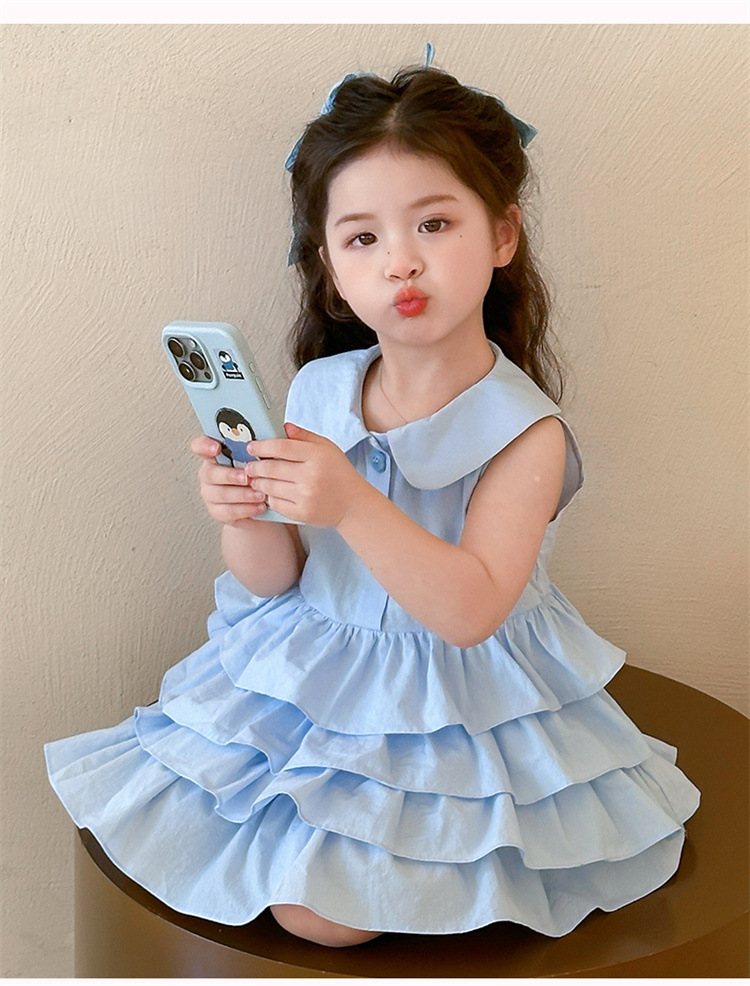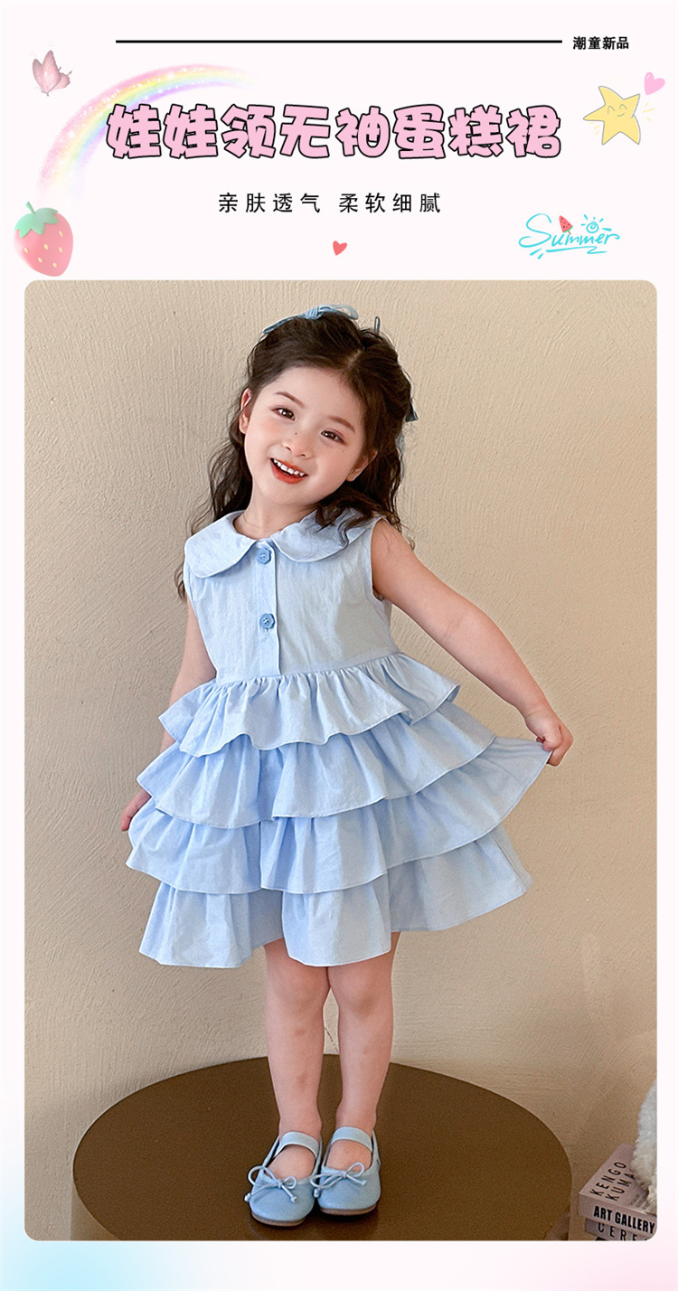 소녀 인형 칼라 케이크 치마 2025 여름 새로운 패션 소녀 세련된 공주 치마 어린이 원피스스토어 가기