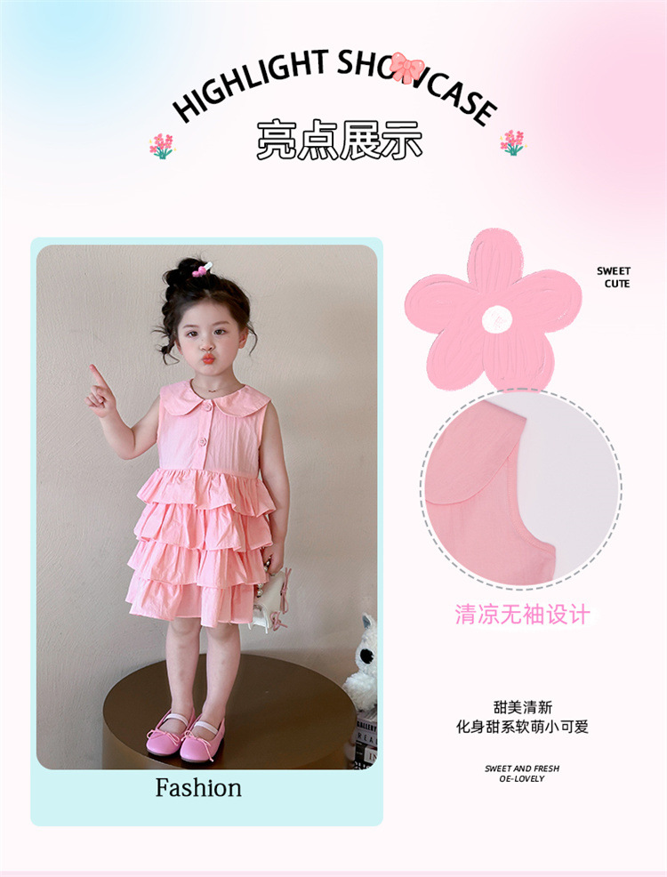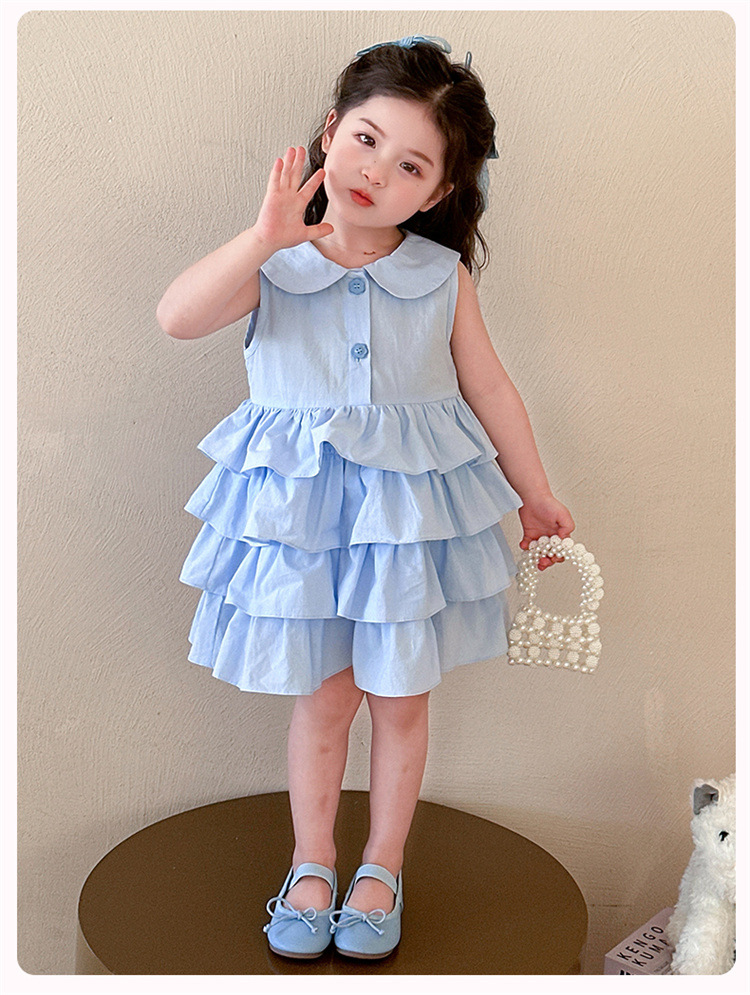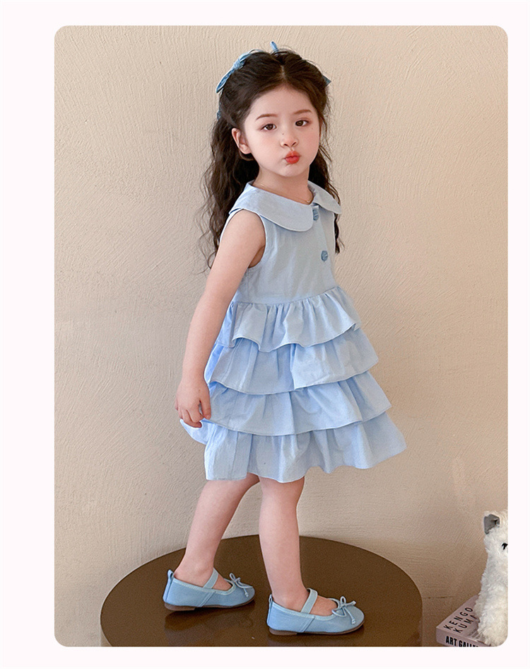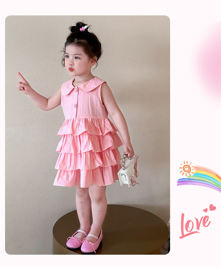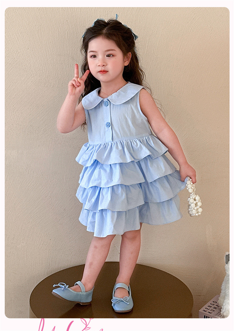 소녀 인형 칼라 케이크 치마 2025 여름 새로운 패션 소녀 세련된 공주 치마 어린이 원피스스토어 가기