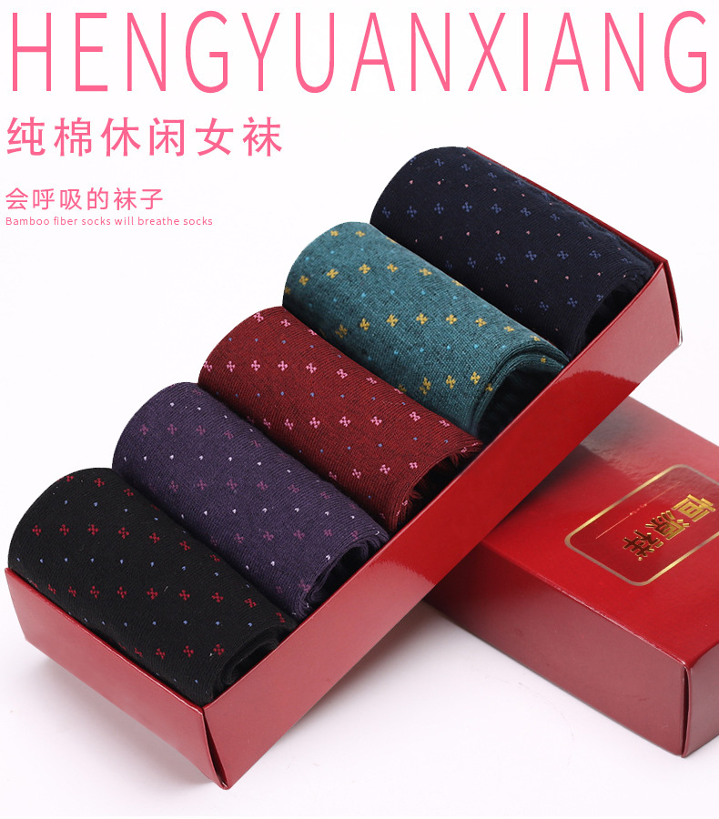 Hengyuanxiang 중년 여성 가을 및 겨울 양말 캐주얼 웨이브 포인트 캐주얼 자카드 여성 양말 중간 배럴 사계절 양말