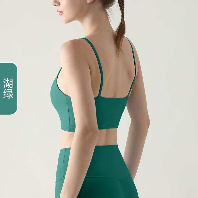 국경 간 요가 조끼 야외 스포츠 속옷 여성 유럽과 미국의 러닝 피트니스웨어 충격 방지 브래지어 가슴 패드가있는 스파게티 스트랩