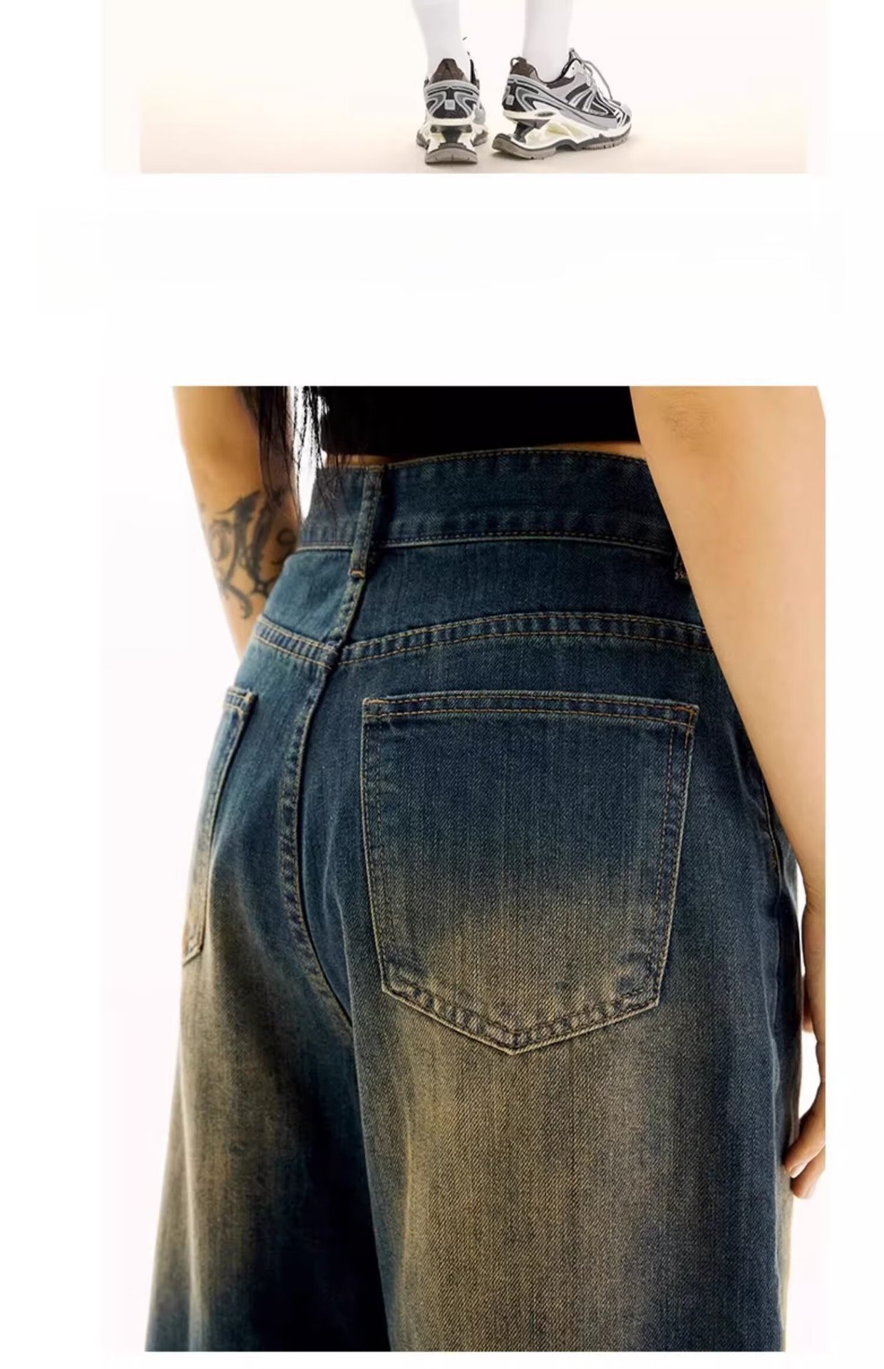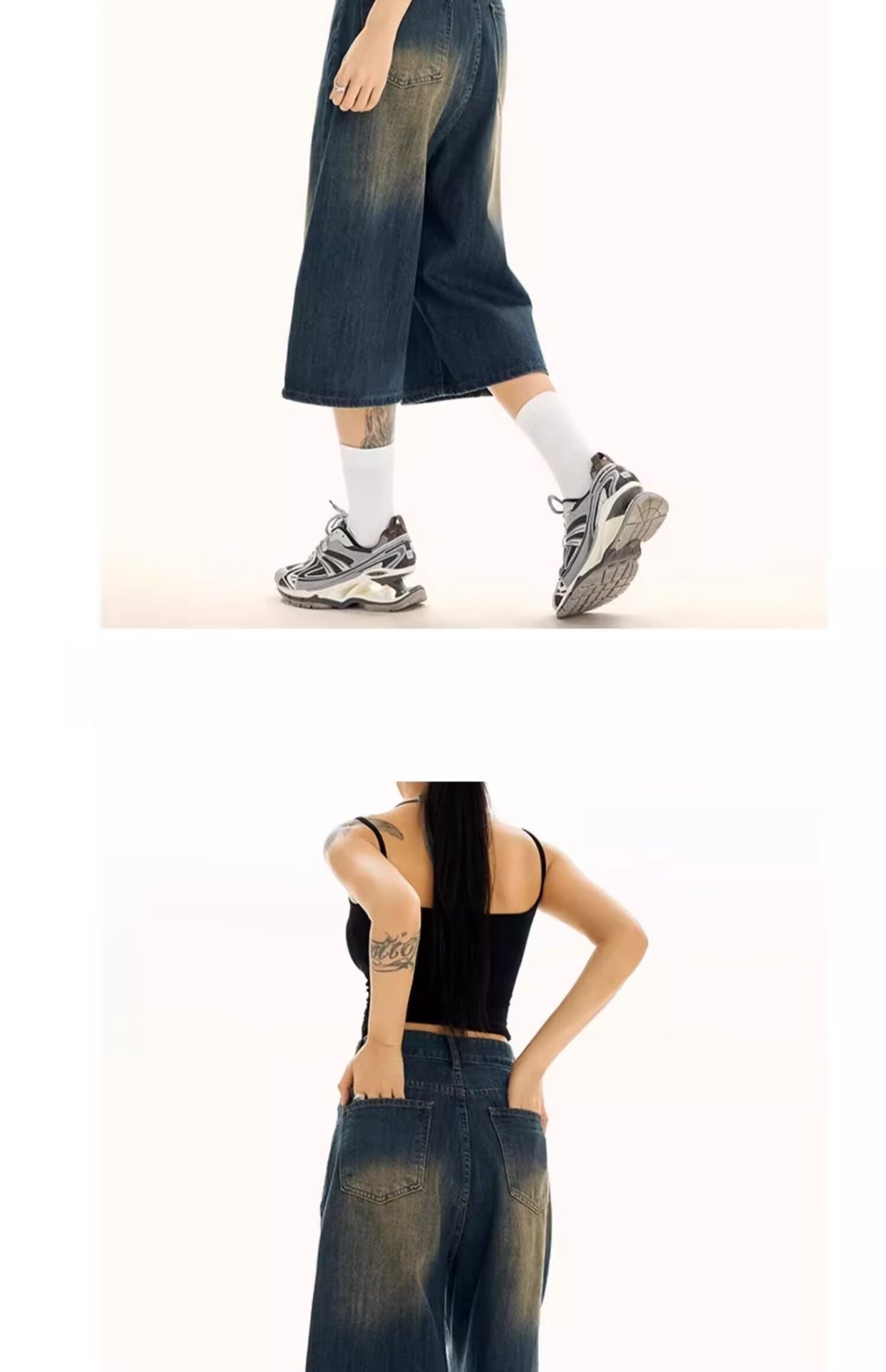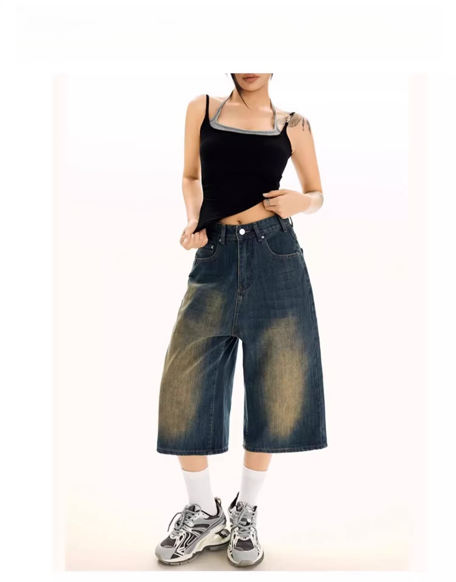 아메리칸 스타일 레트로 느슨한 넓은 다리 데님 자른 바지 여자 시즌 2025 여름 새로운 높은 허리 슬리밍 스트레이트 바지스토어 가기