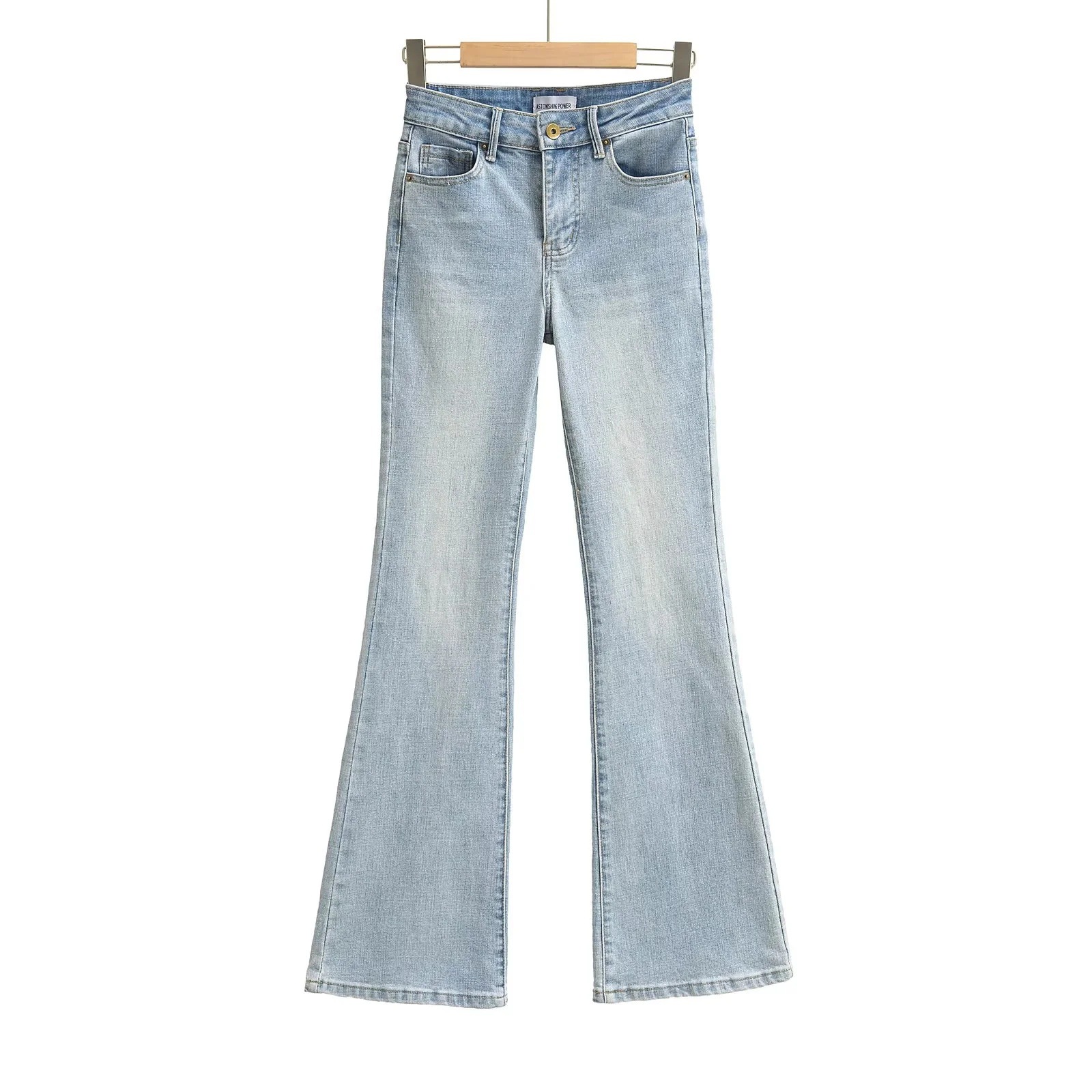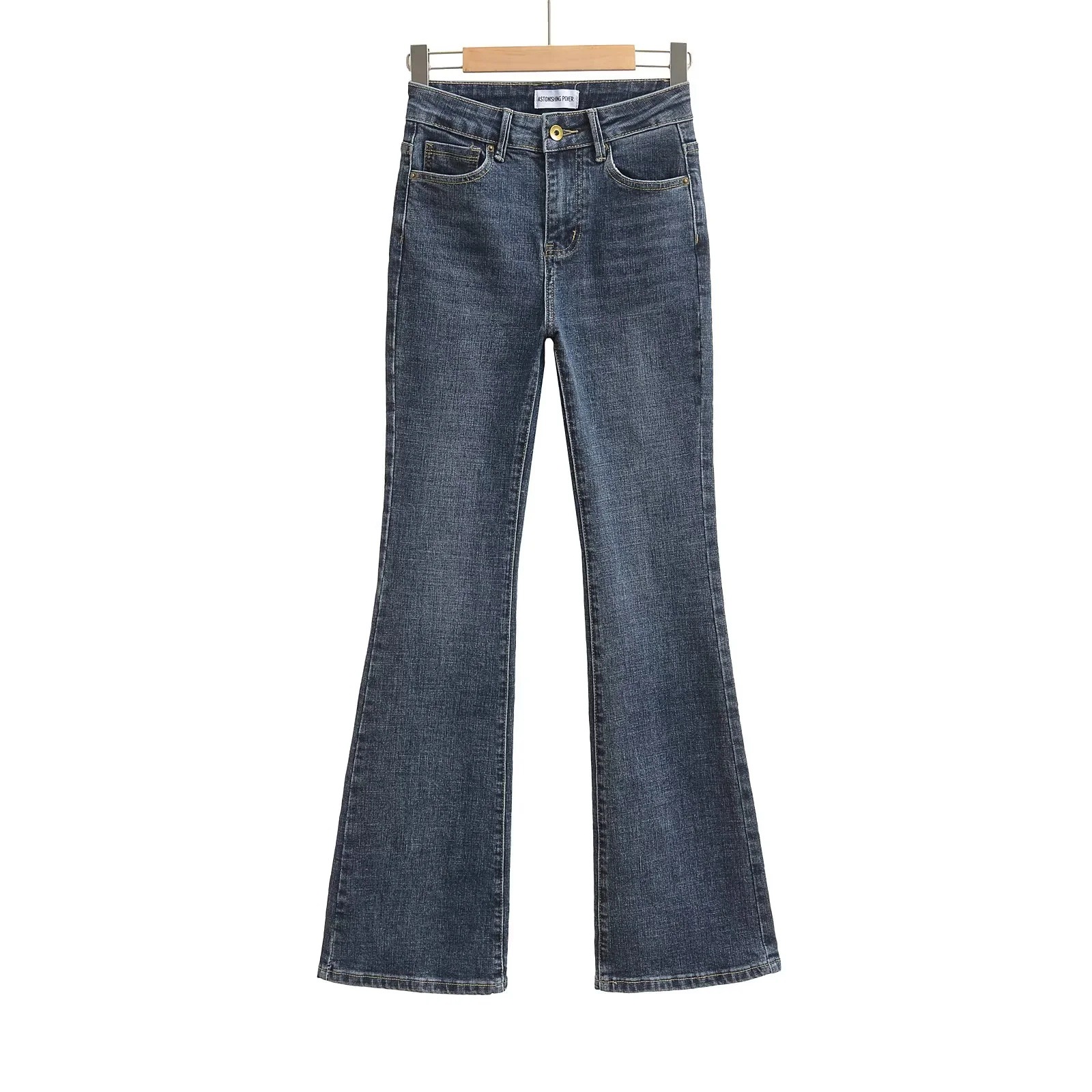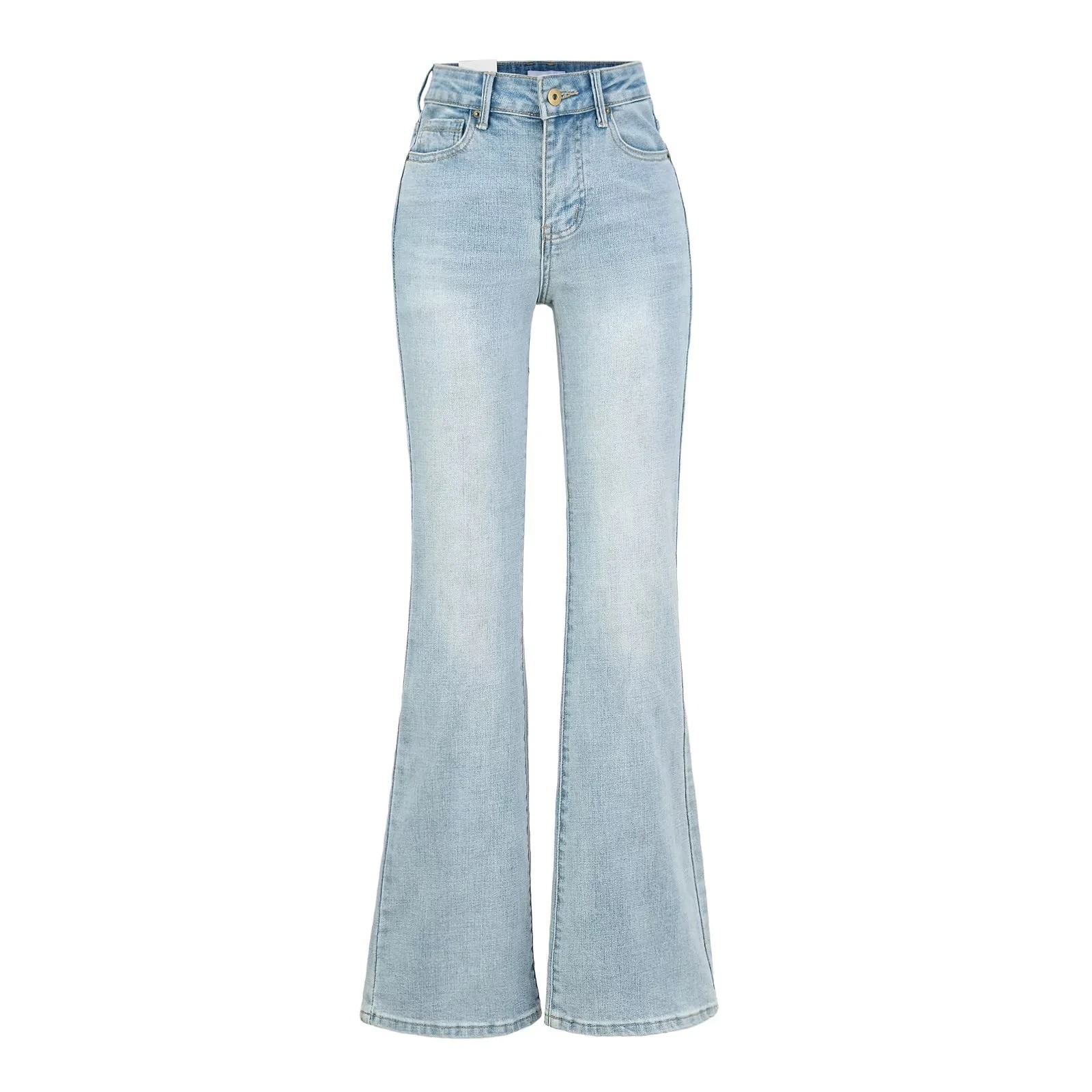 봄 2025 새로운 미국 스타일 레트로 뜨거운 소녀 섹시한 높은 허리 슬림 그림 엉덩이 트럼펫 청바지스토어 가기