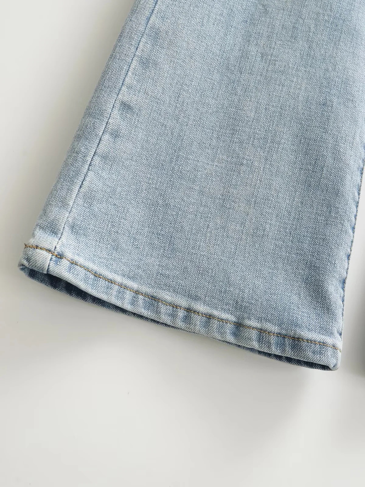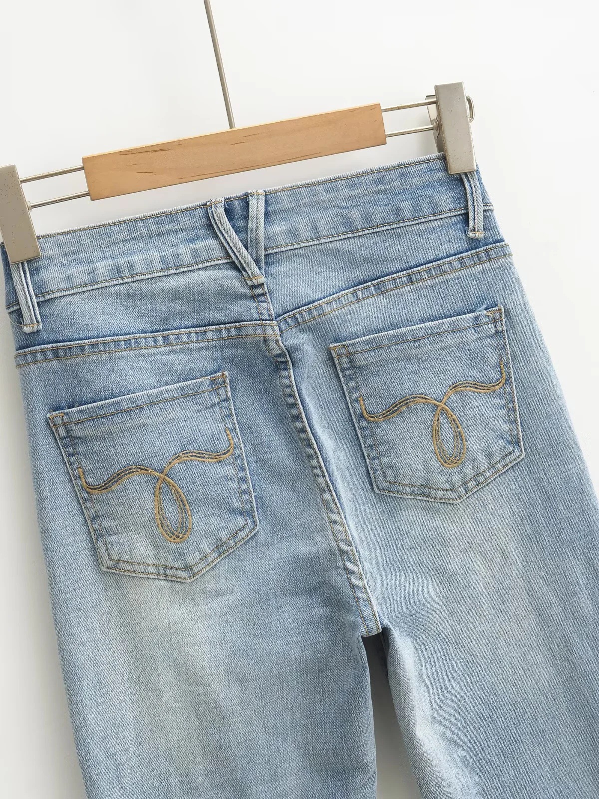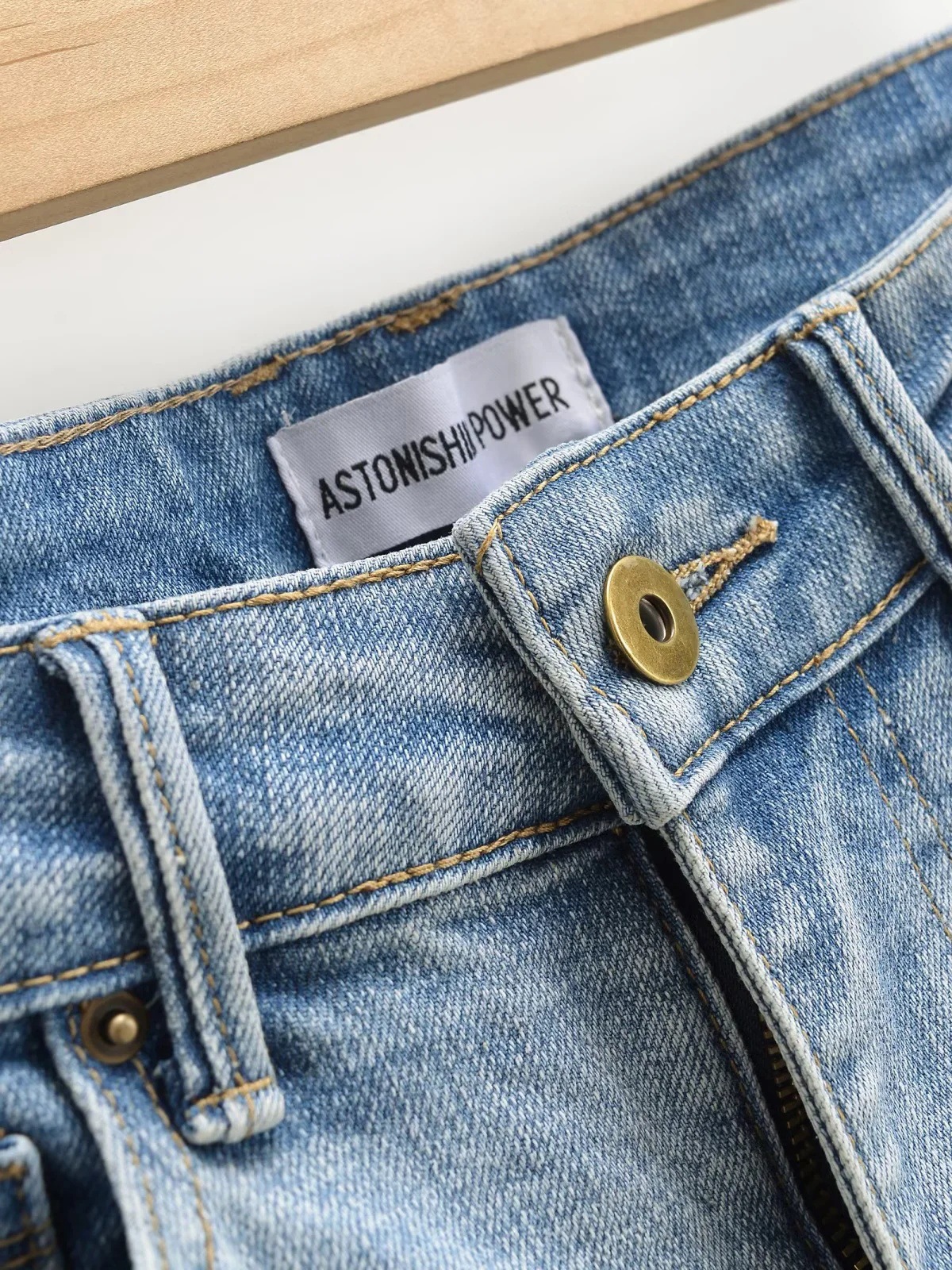 봄 2025 새로운 미국 스타일 레트로 뜨거운 소녀 섹시한 높은 허리 슬림 그림 엉덩이 트럼펫 청바지스토어 가기