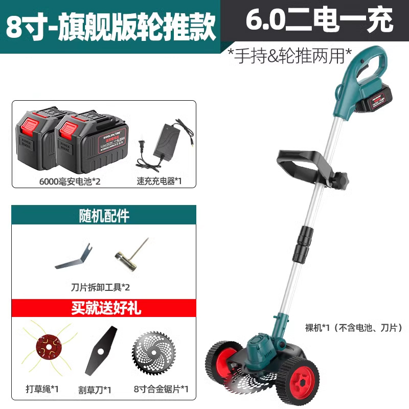 • 신제품 [휴대용/바퀴형 겸용] 8inch - 휴대용/바퀴형 겸용 브러시리스 잔디깎이 기계의 플래그십 버전 [4.0 배터리, 1회 충전, 1회 충전]