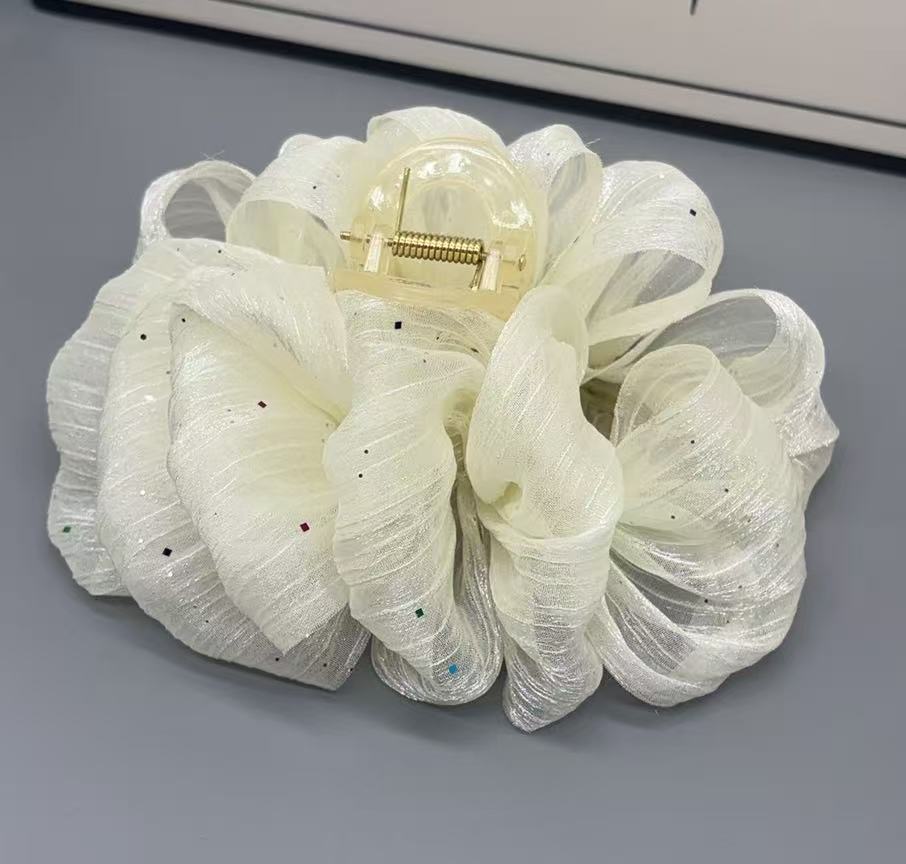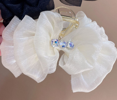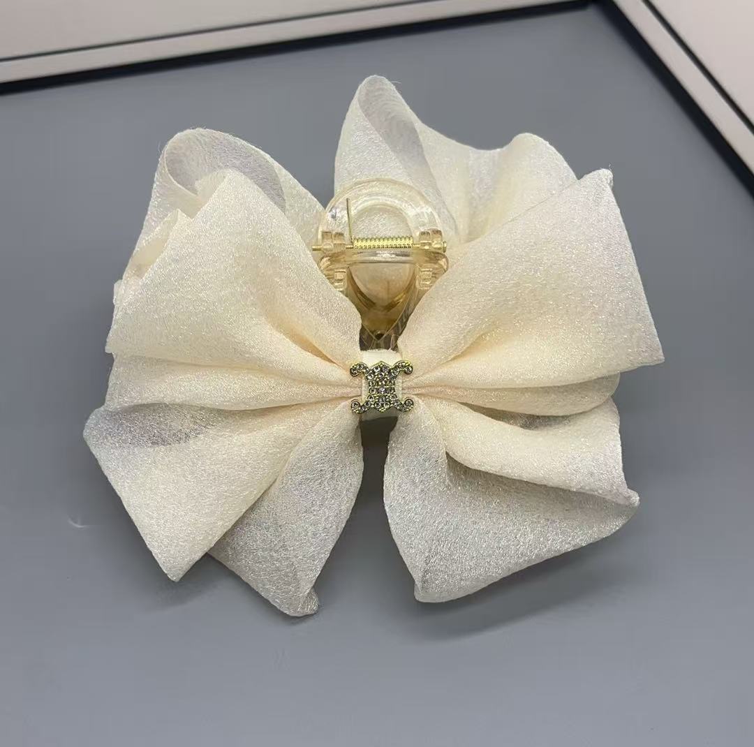 큰 활 그랩 클립 탈출 공주 Organza 헤어 클립 머리 머리 머리 머리 상어 클립 여성용 헤어 클립
