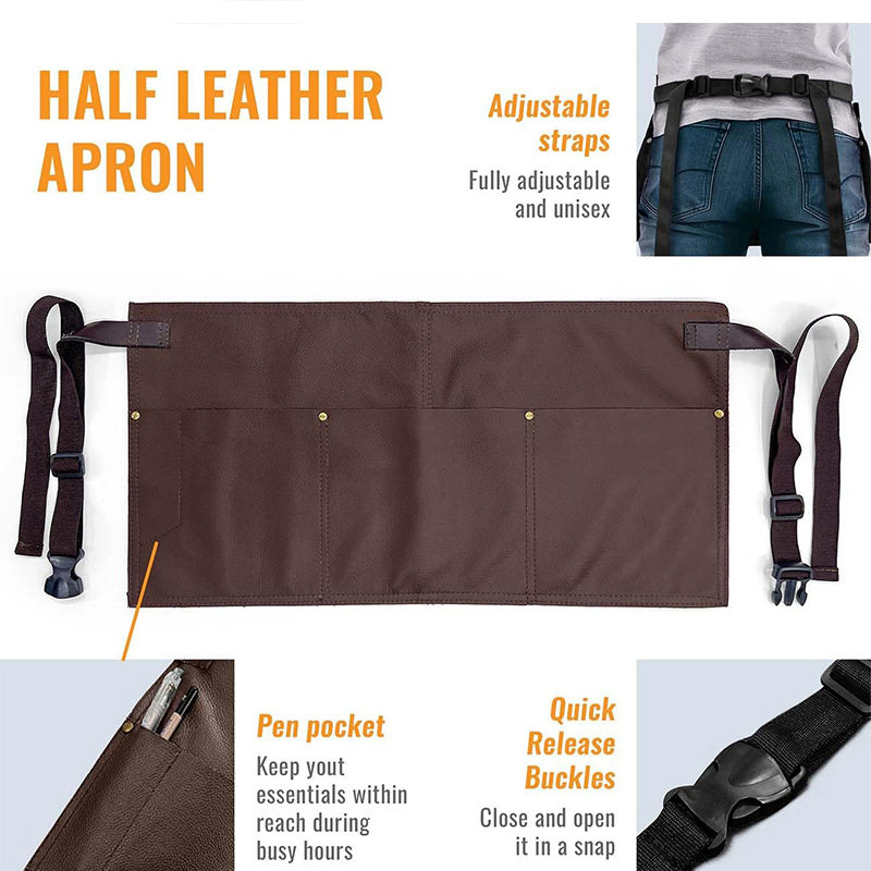 국경 간 아마존 PU 가죽 앞치마 방수 오일 방지 헤어 커팅 헤어 스타일 가정용 주방 앞치마 도매 맞춤형