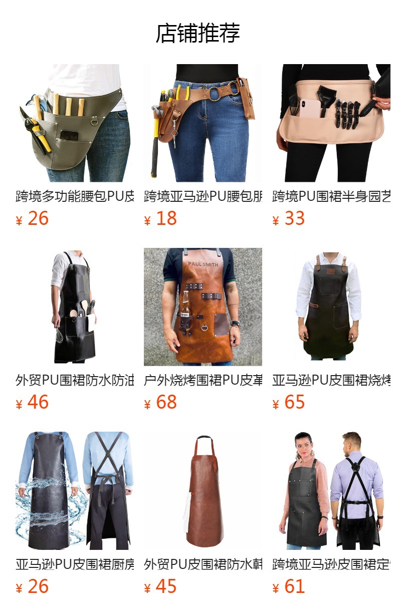 국경 간 아마존 PU 가죽 앞치마 방수 오일 방지 헤어 커팅 헤어 스타일 가정용 주방 앞치마 도매 맞춤형스토어 가기