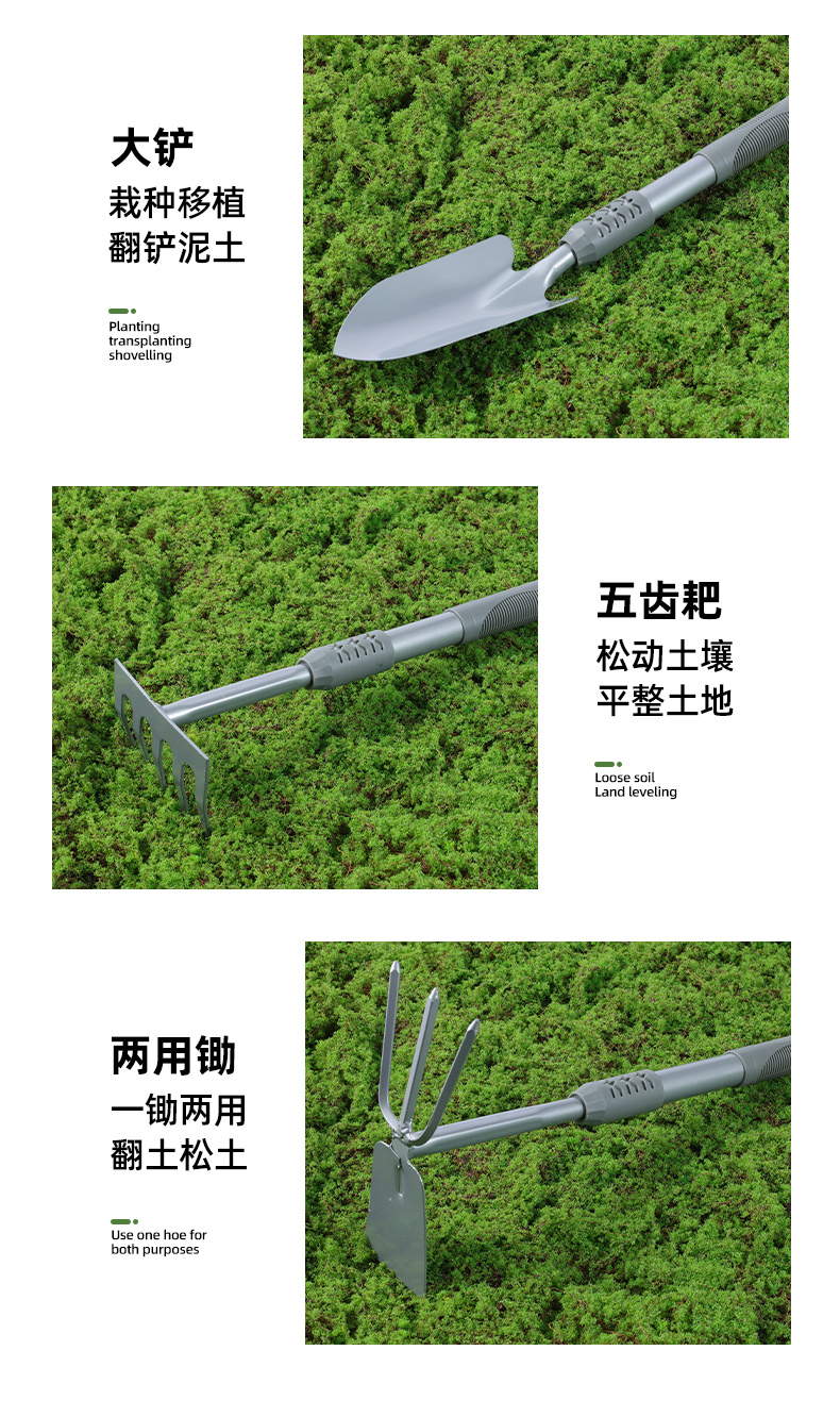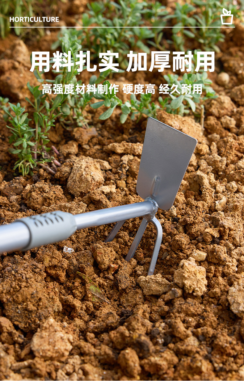 • [길어지고 두꺼워지며 한 줌이 열 개가 되는 것] 은백색의 고품질 두꺼워진 [다용도 괭이와 갈퀴]
