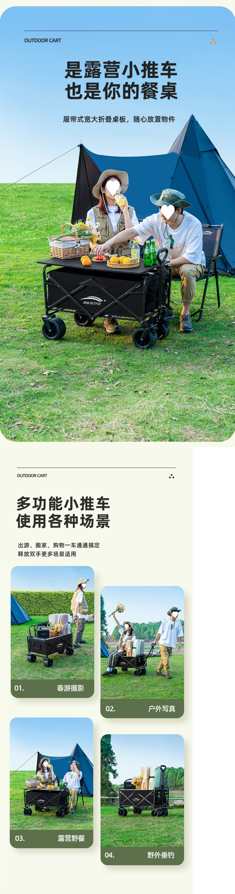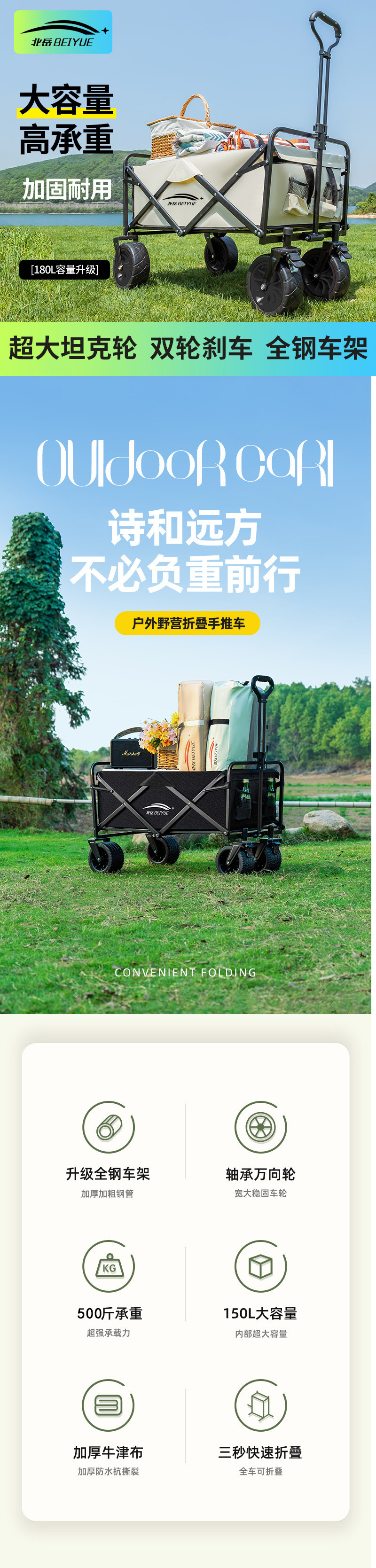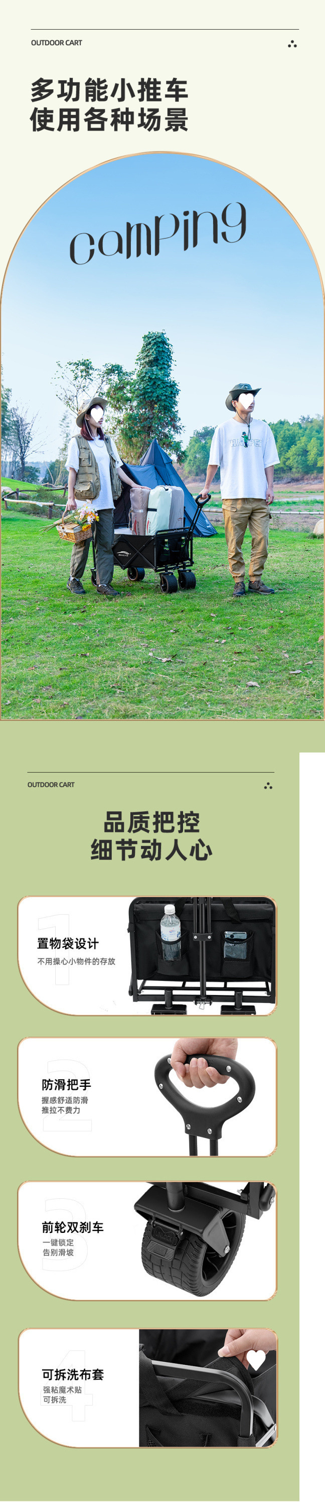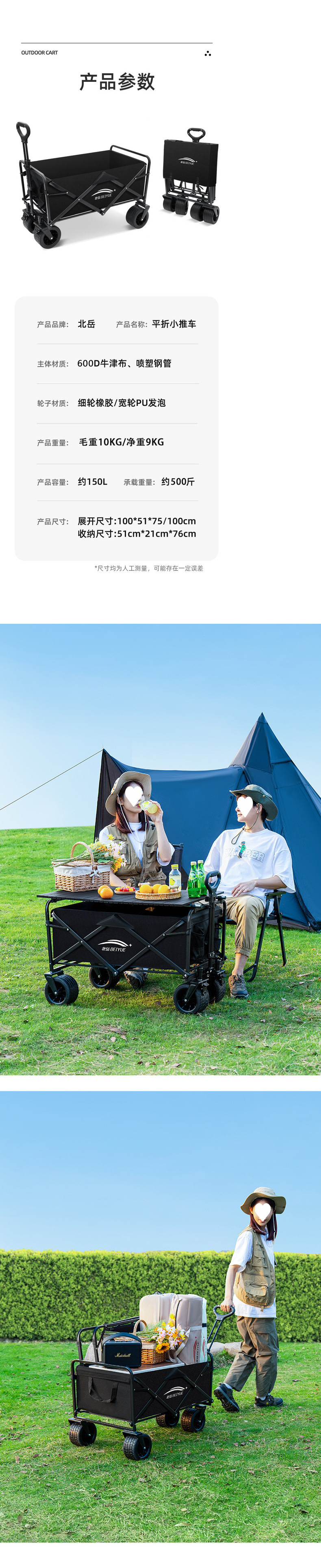 캠핑카 캠핑 카트 트레일러 접이식 야외 여행 쇼핑 핸드 푸시 피크닉 트롤리 캠핑 핸드 풀
