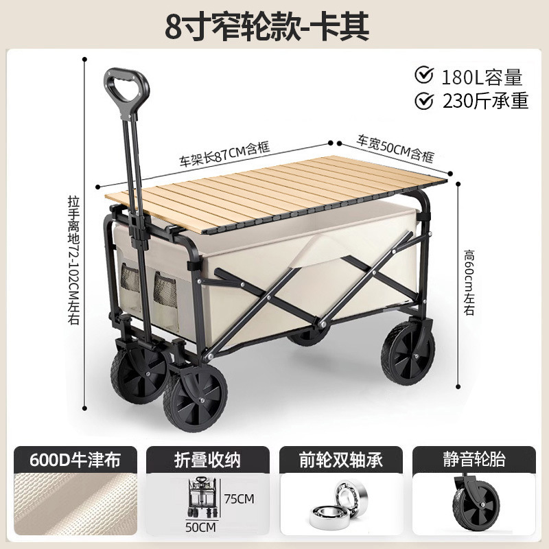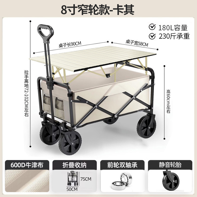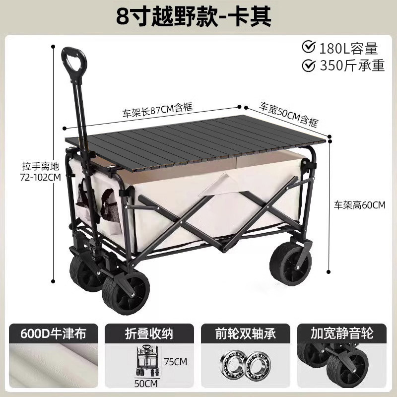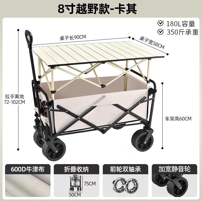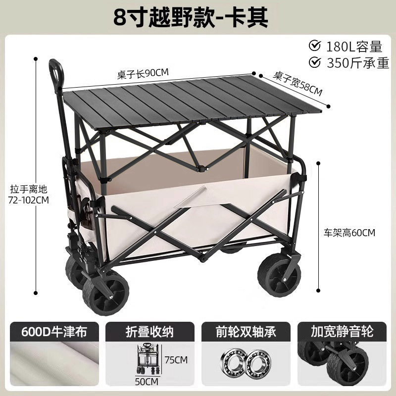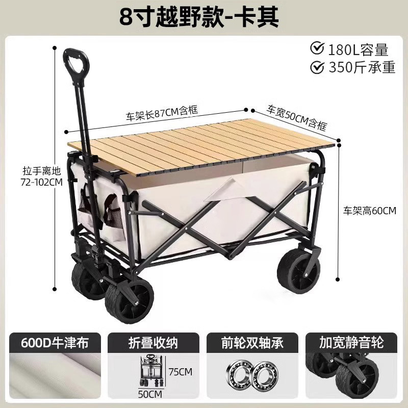 • 테이블 패키지 [카키] 크로스컨트리 휠 8inch개/더블 브레이크 + 우드그레인 테이블